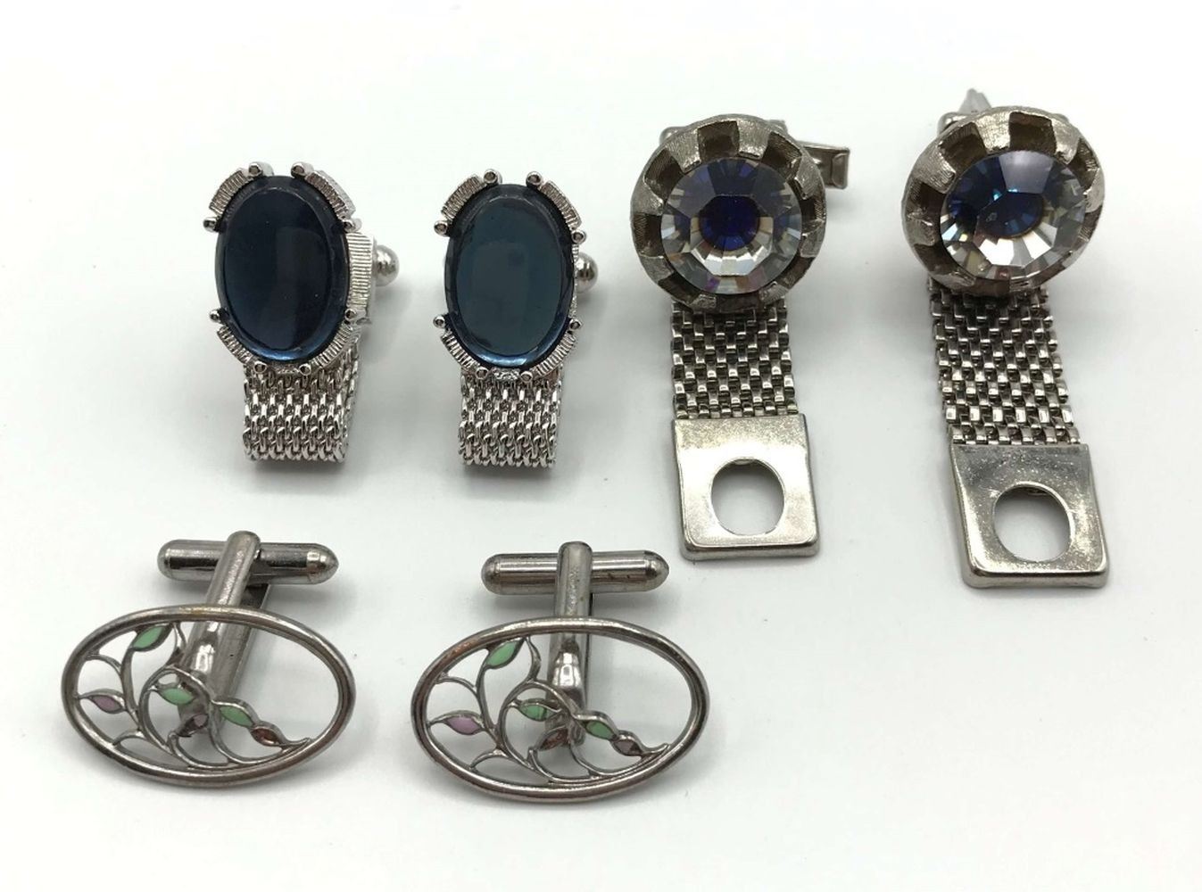(1)MARKED SWANK (2)PAIRS DARK BLUE RHINESTONES (1)TREE OF LIFE ENAMEL