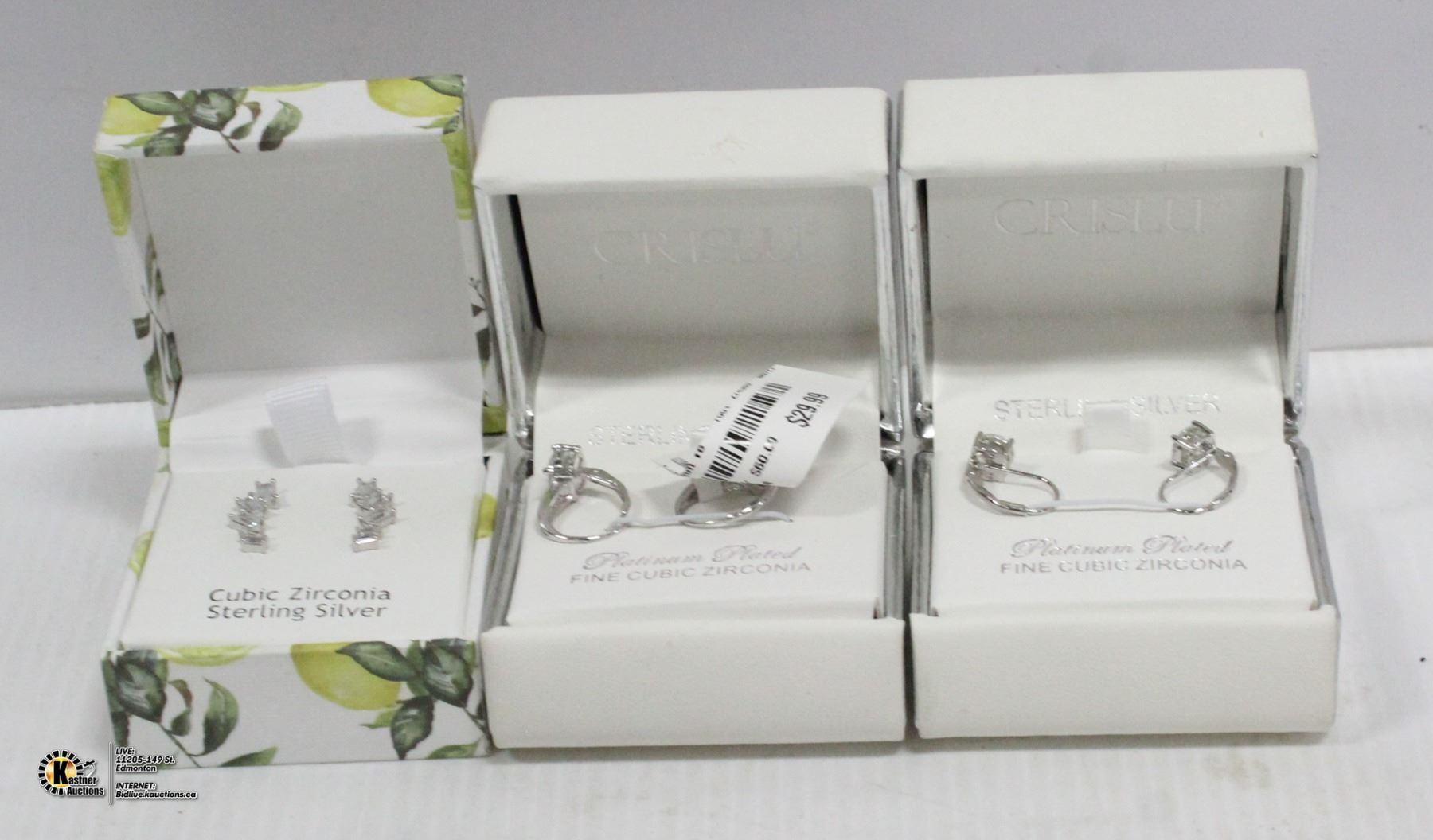 3 PAIRS OF STERLING SILVER CUBIC ZIRCONIA EARRINGS