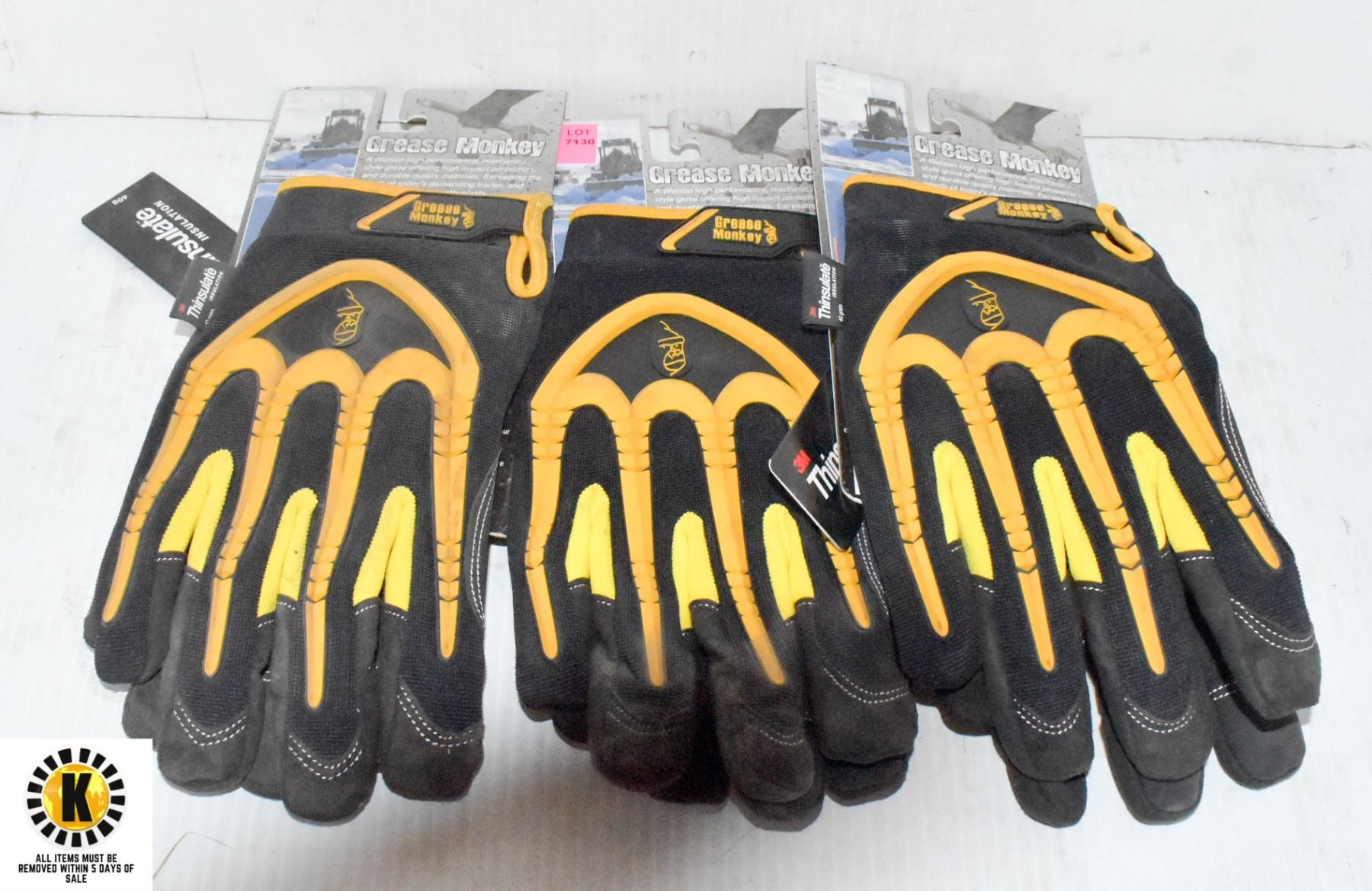 3 PAIRS OF YELLOW GREASE MONKEY WORK GLOVES