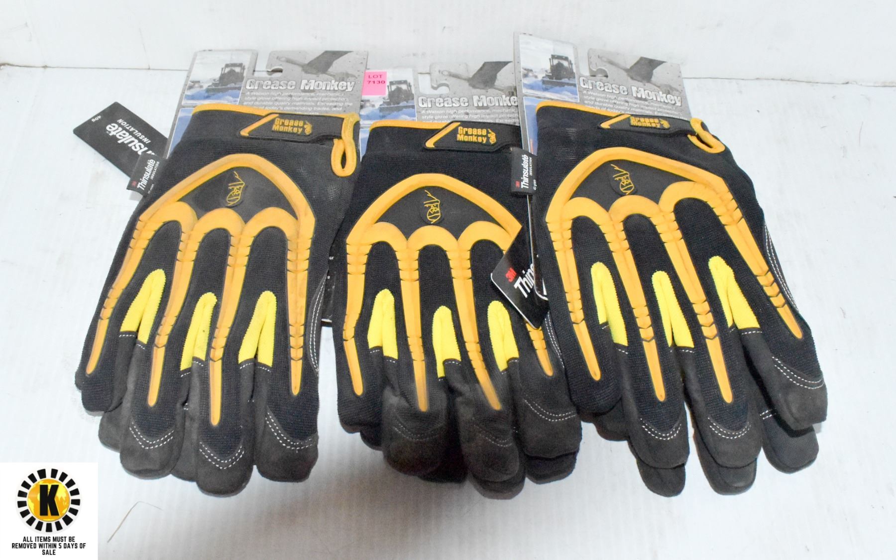 3 PAIRS OF YELLOW GREASE MONKEY WORK GLOVES