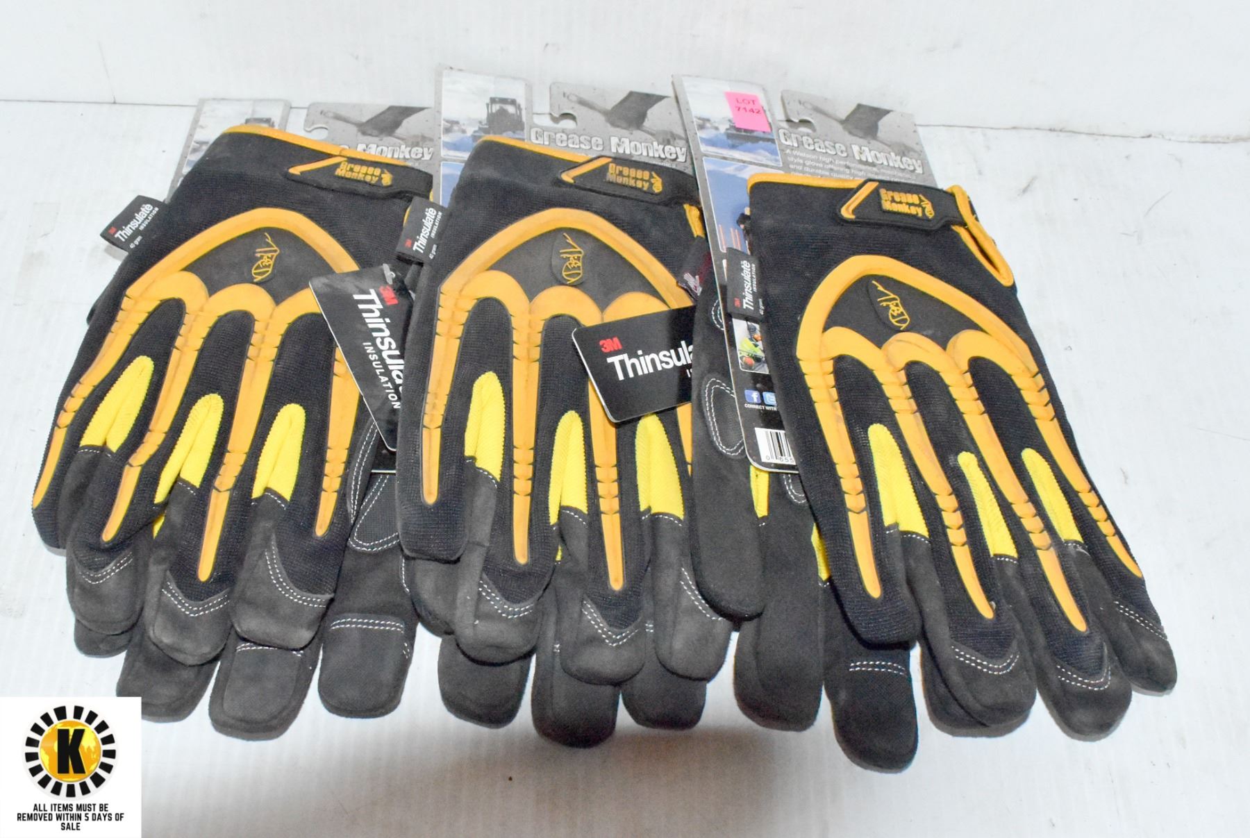 3 PAIRS OF YELLOW GREASE MONKEY WORK GLOVES