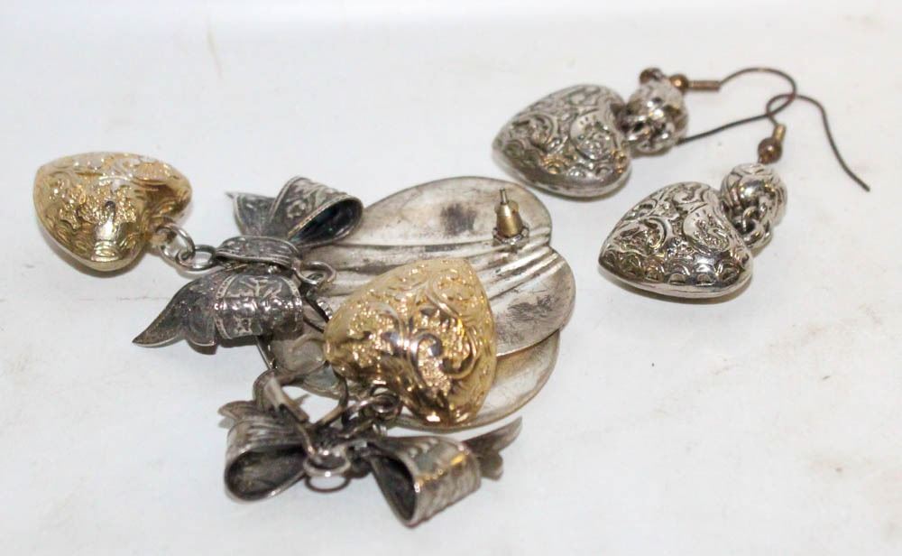 3 PAIRS SILVER AND GOLD TONE HEART THEME EARRINGS