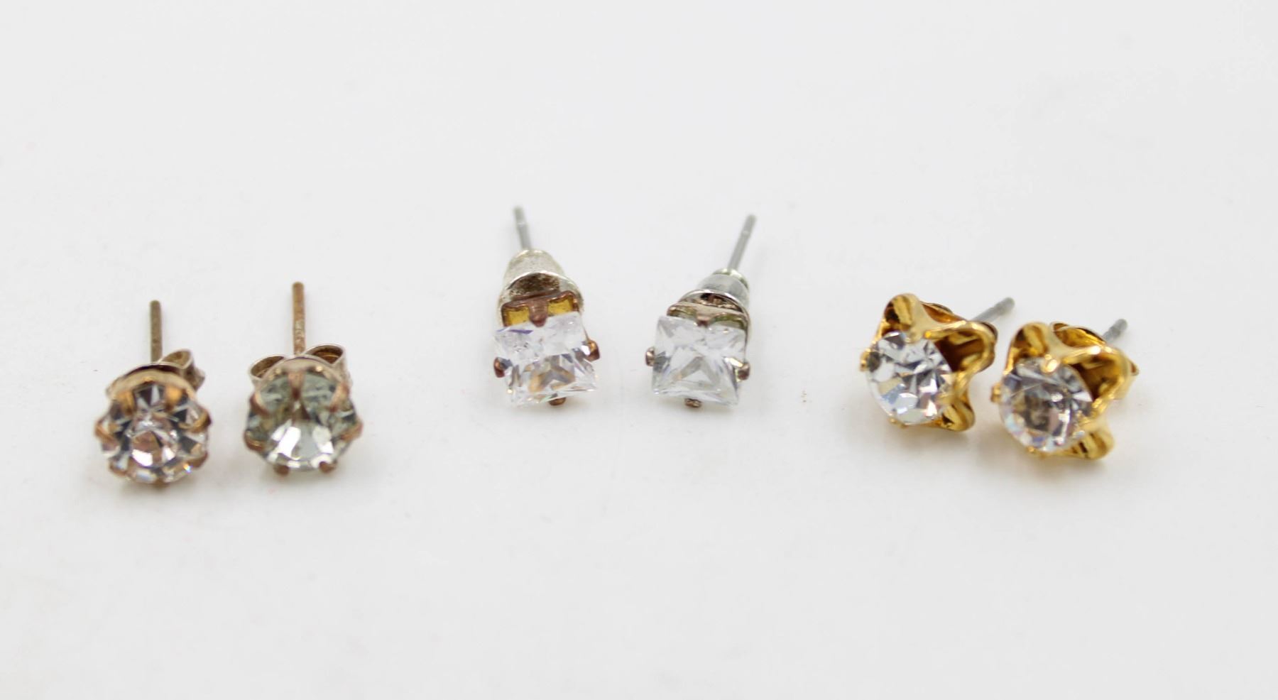 3 PAIRS SOLITAIRE EARRINGS TOGETHER-ESTATE