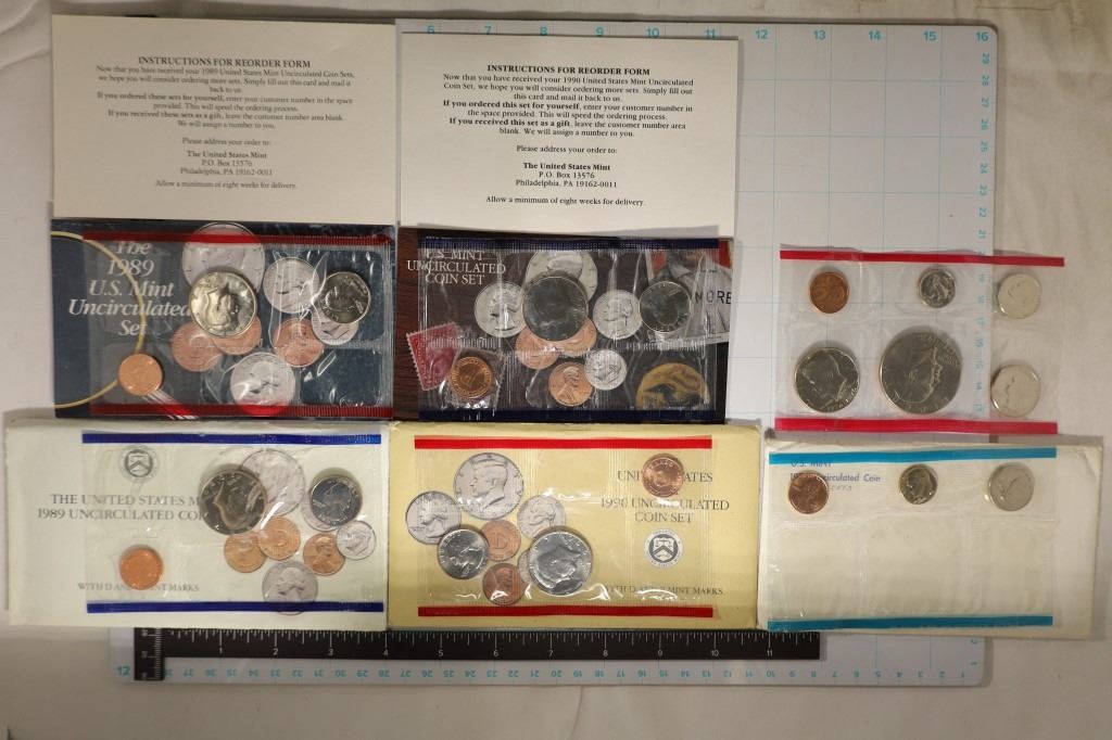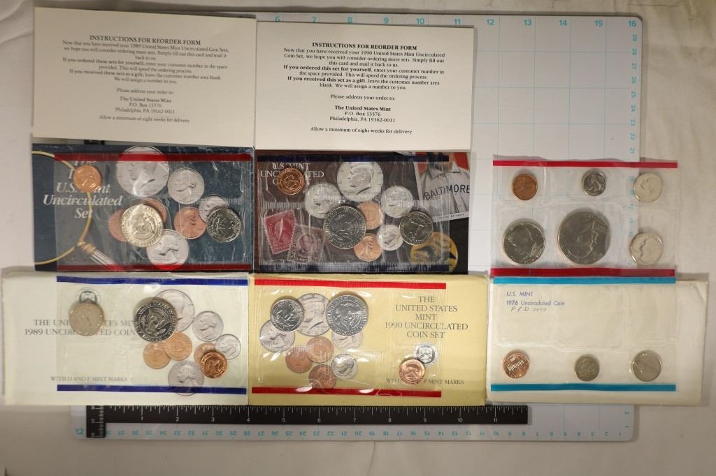 MISSING THE DIMES AND NICKELS FROM BOTH SETS, 1990-P & D MISSING BOTH DIMES AND NICKELS FROM BOTH SETS AND 1976-P & D MISSING DOLLAR-HALF & QUARTER FROM THE "P'' SET