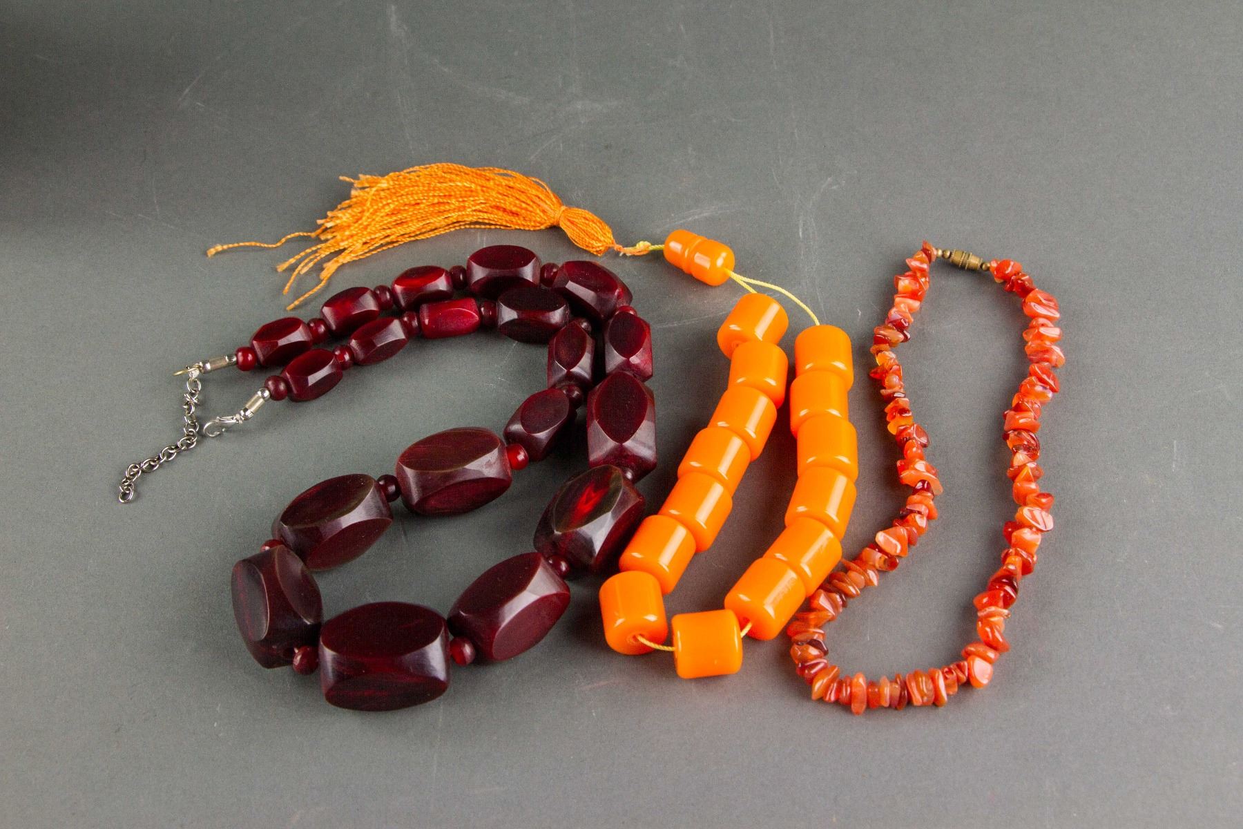 Three pieces of assorted Chinese necklace; D: 31 cm, W: 2 cm, 154 grams (1/3), D: 13 cm, W: 1.5 cm, 70 grams (2/3), D: 19 cm, W: 1 cm, 38 grams