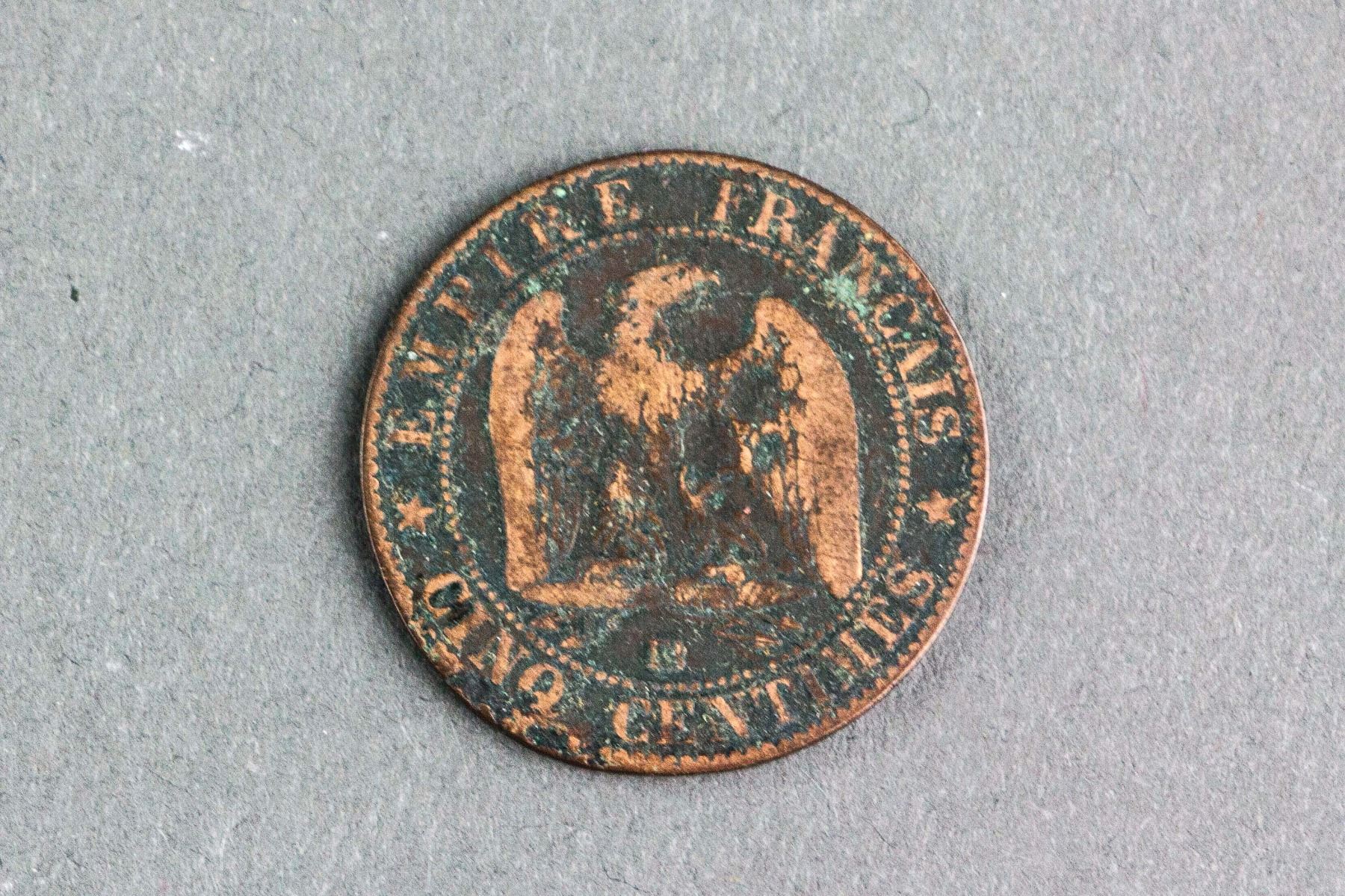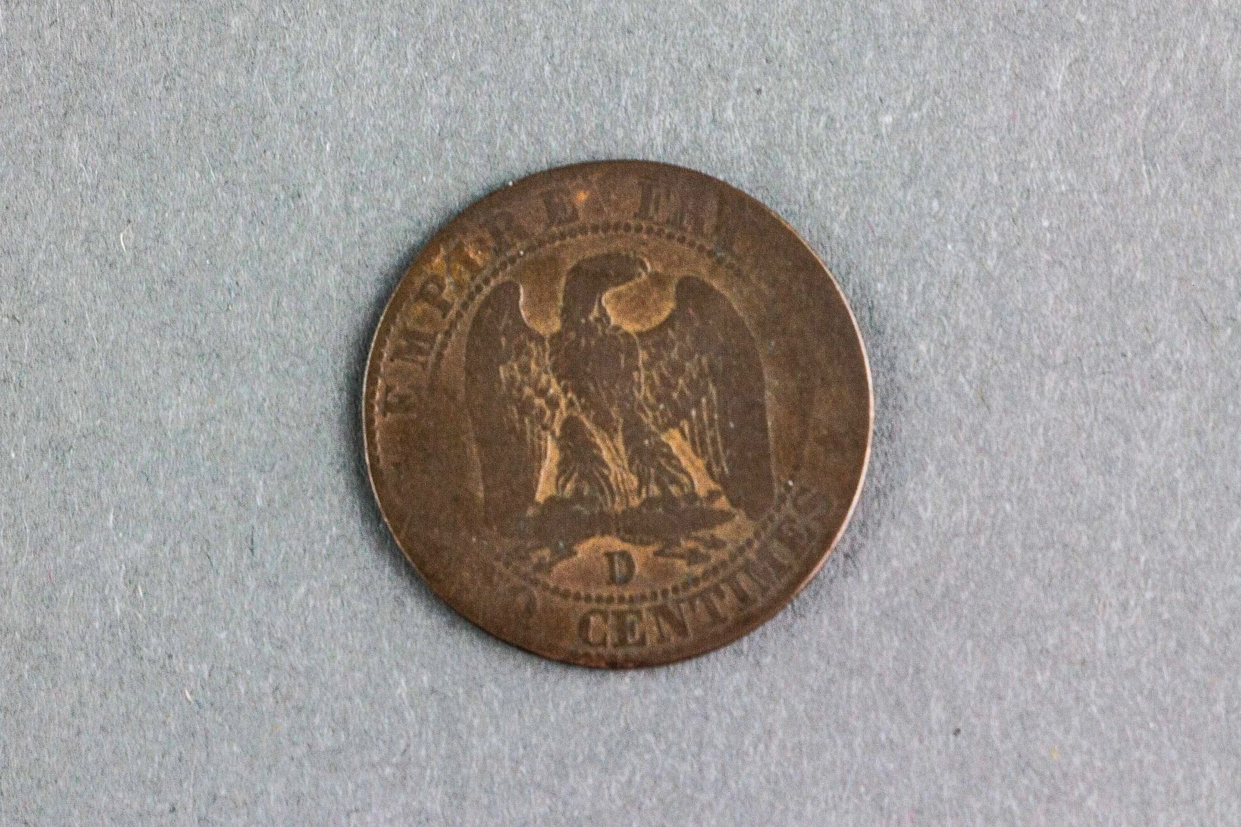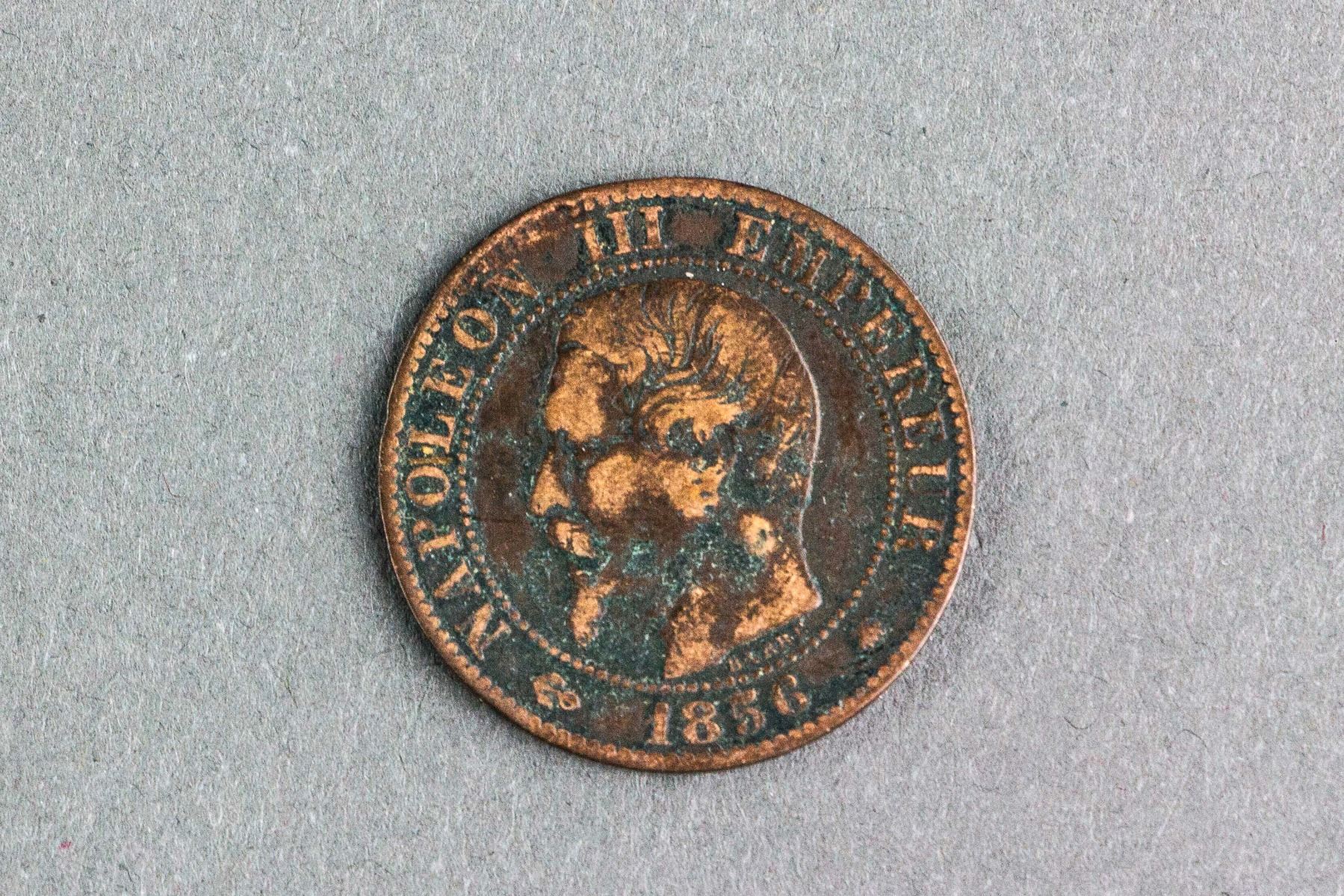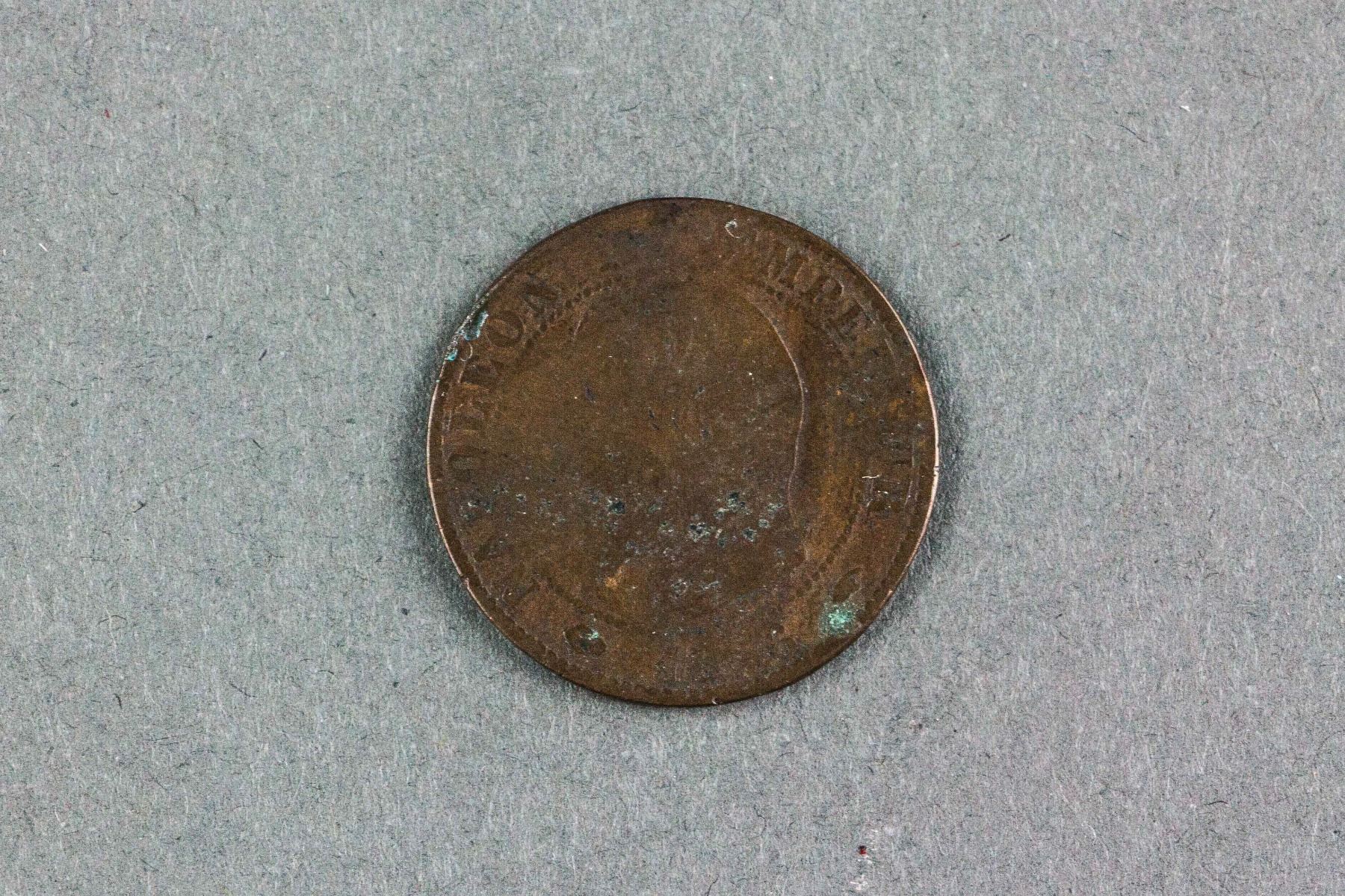 Three (3) France bronze coins; comprised of one 1834, one 1836 and one 1854 bronze coins; D: 2.5 cm, 14 grams (total)
