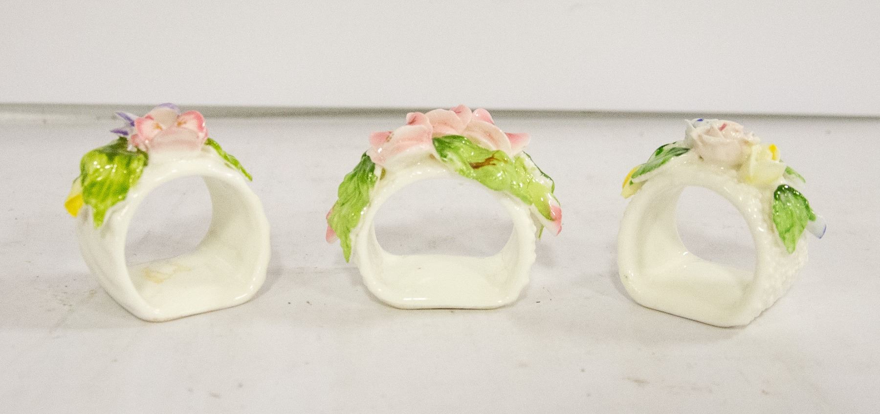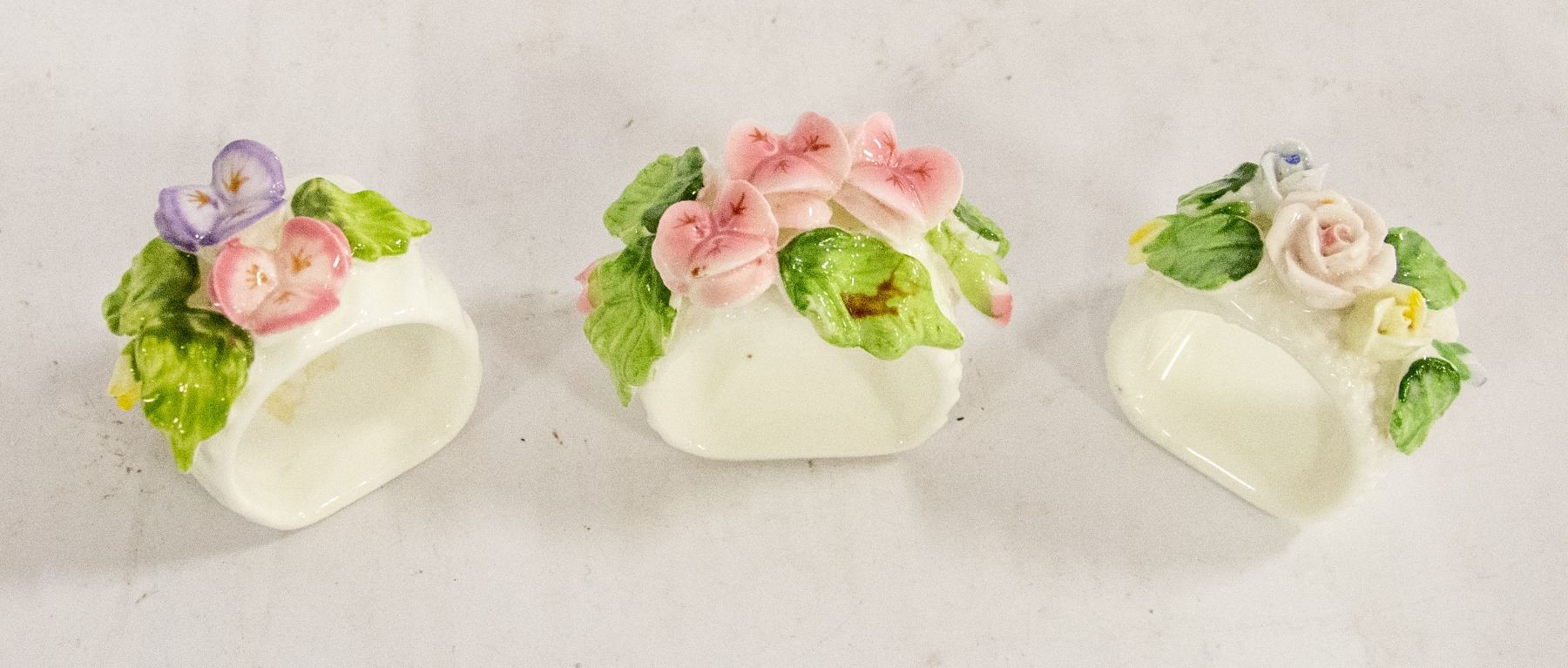 3 PC BONE CHINA NAPKIN RINGS, PAIR OF PORCELAIN BI