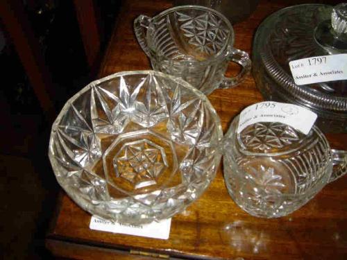 3 PC. CRYSTAL SUGAR, CREAMER, & BOWL