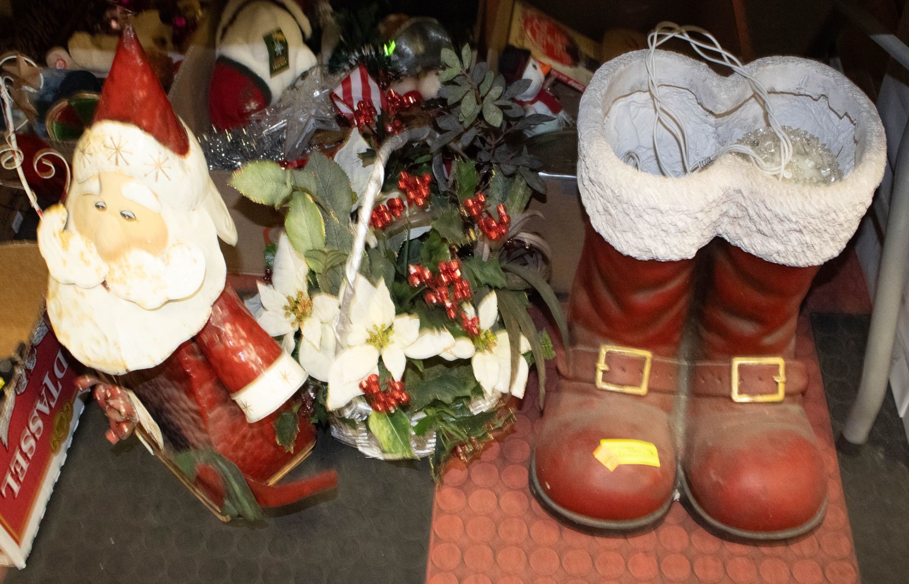 3 PC HOLIDAY BOOTS LIGHTS STAND + FLOWERS DECOR