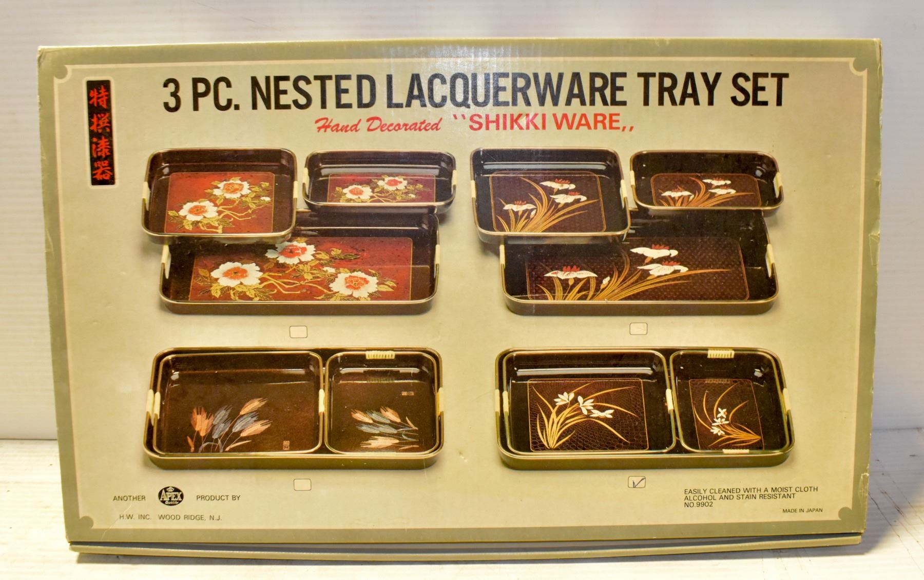 3 PC NESTLED LACQUERED TRAY SET BY SHIKKI WARE