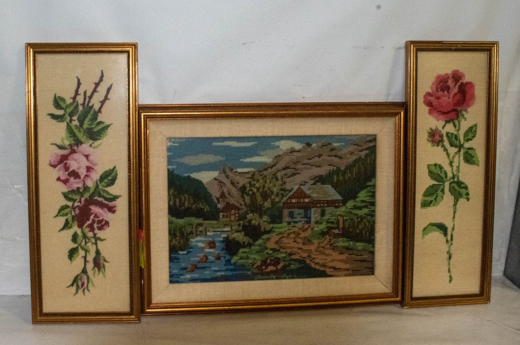3 PC VINTAGE NEEDLE POINT PICTURES (FRAMED)