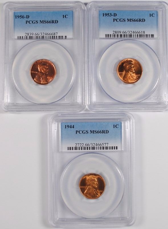 ( 3 ) PCGS GRADED LINCOLN CENTS, PCGS MS-66 RED: 1944, 53-D & 56-D