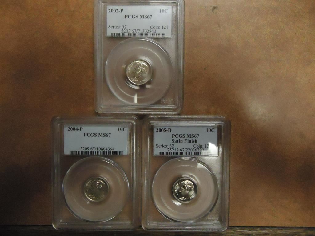 2002-P PCGS MS67, 2004-P PCGS MS67 AND 2005-D PCGS MS67 SATIN FINISH