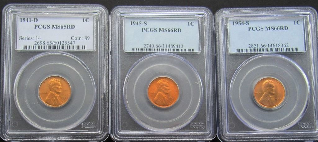 1941-D MS65 RD, 1954-S MS66RD, 1945-S MS66 RD