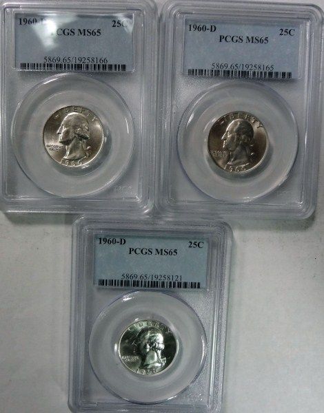 3 PCS 1960-D WASHINGTON QUARTER PCGS MS65 GEM
