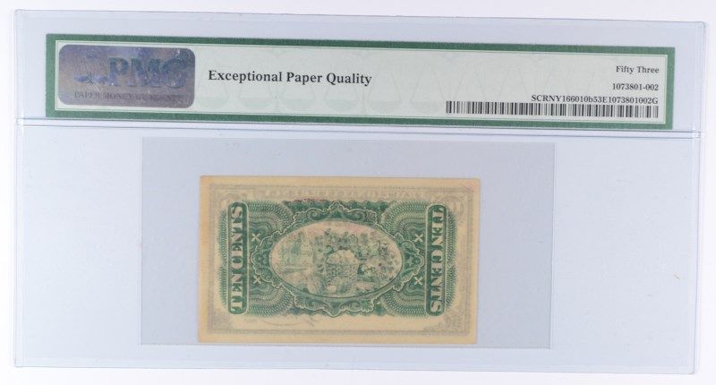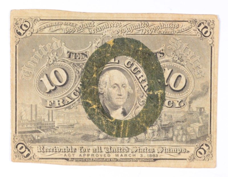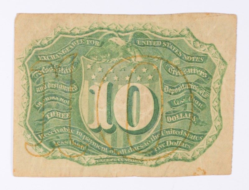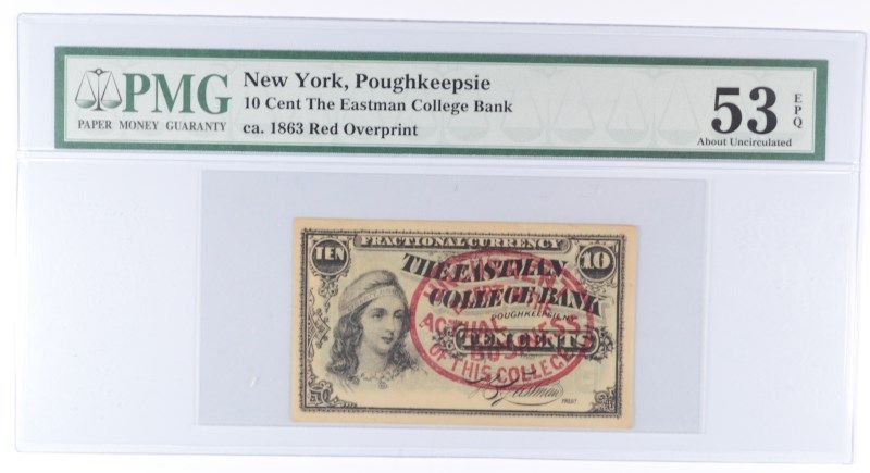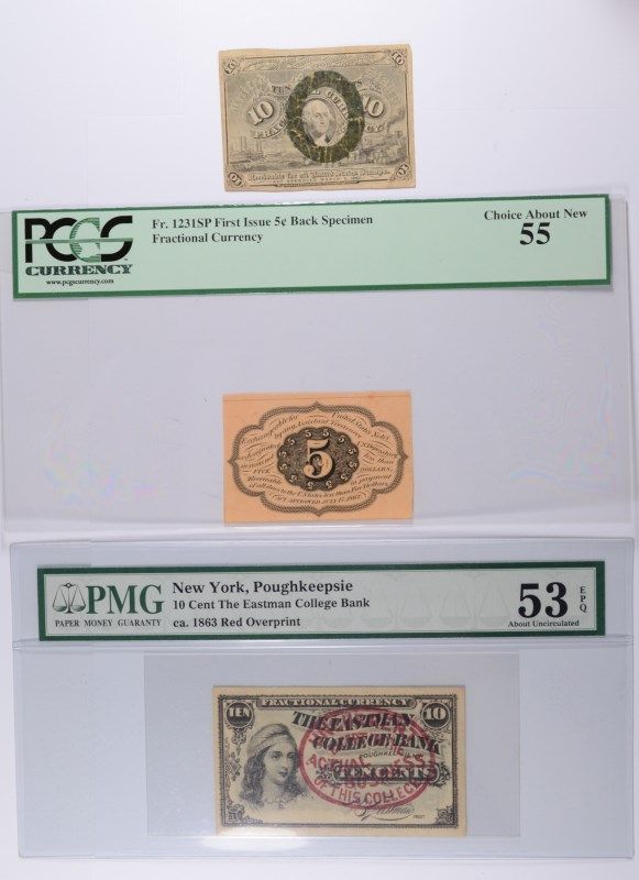 3 PCS FRACTIONAL CURRENCY: TEN CENT 1863 VG, TEN CENT EASTMAN COLLEGE BANK PMG