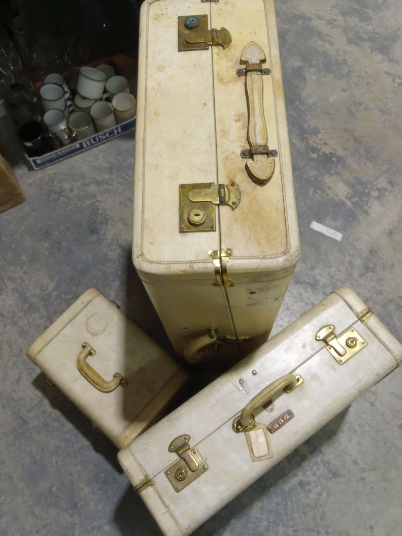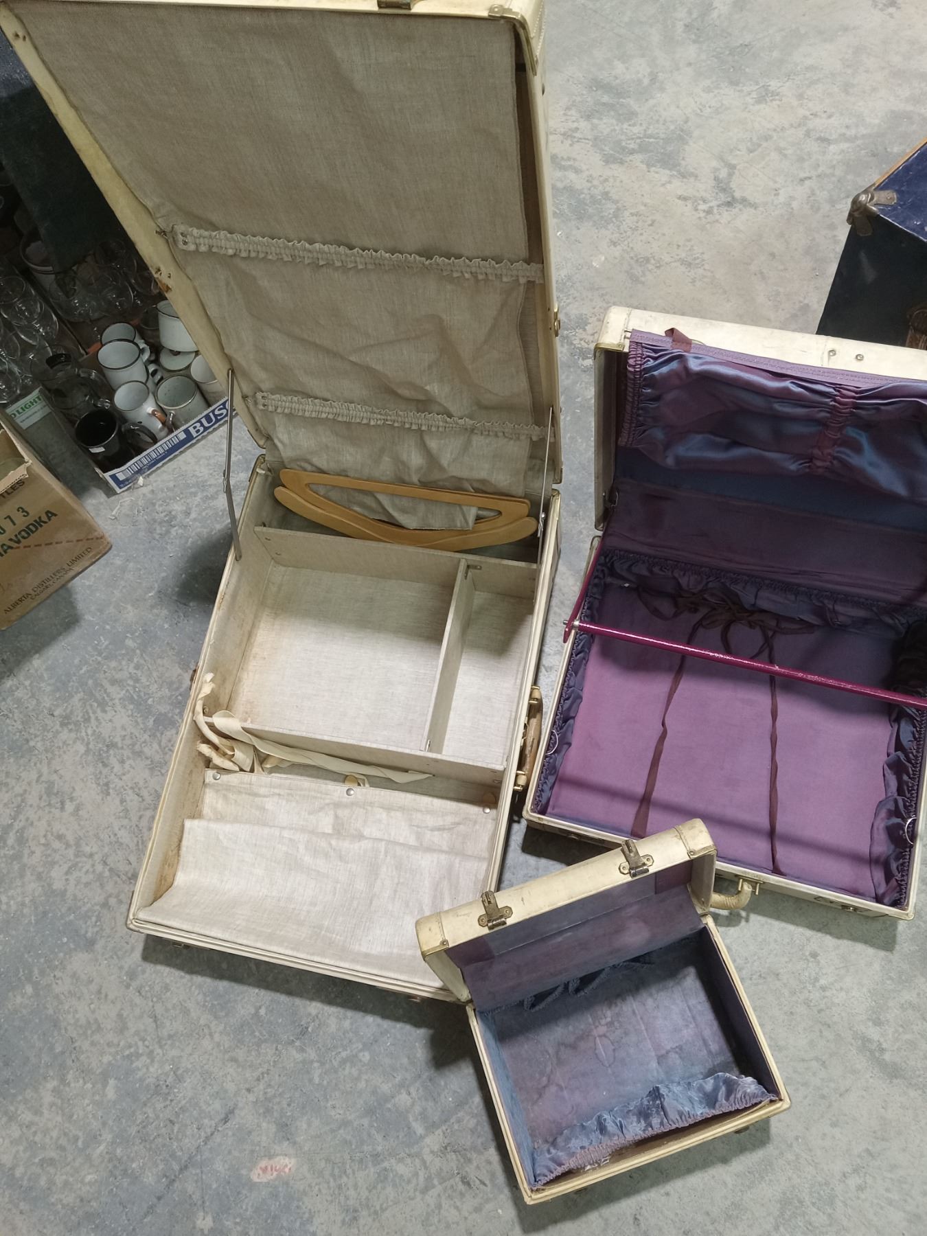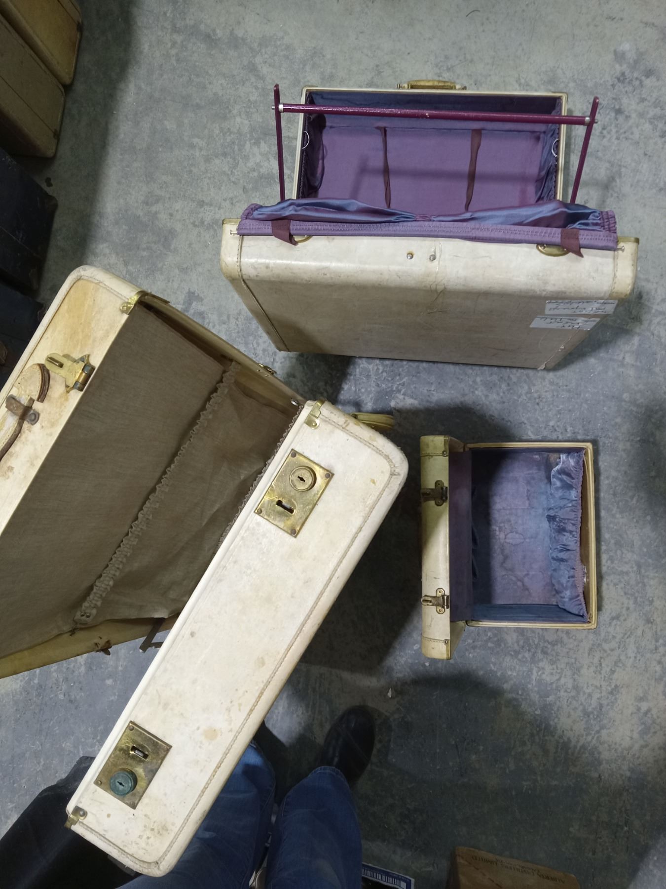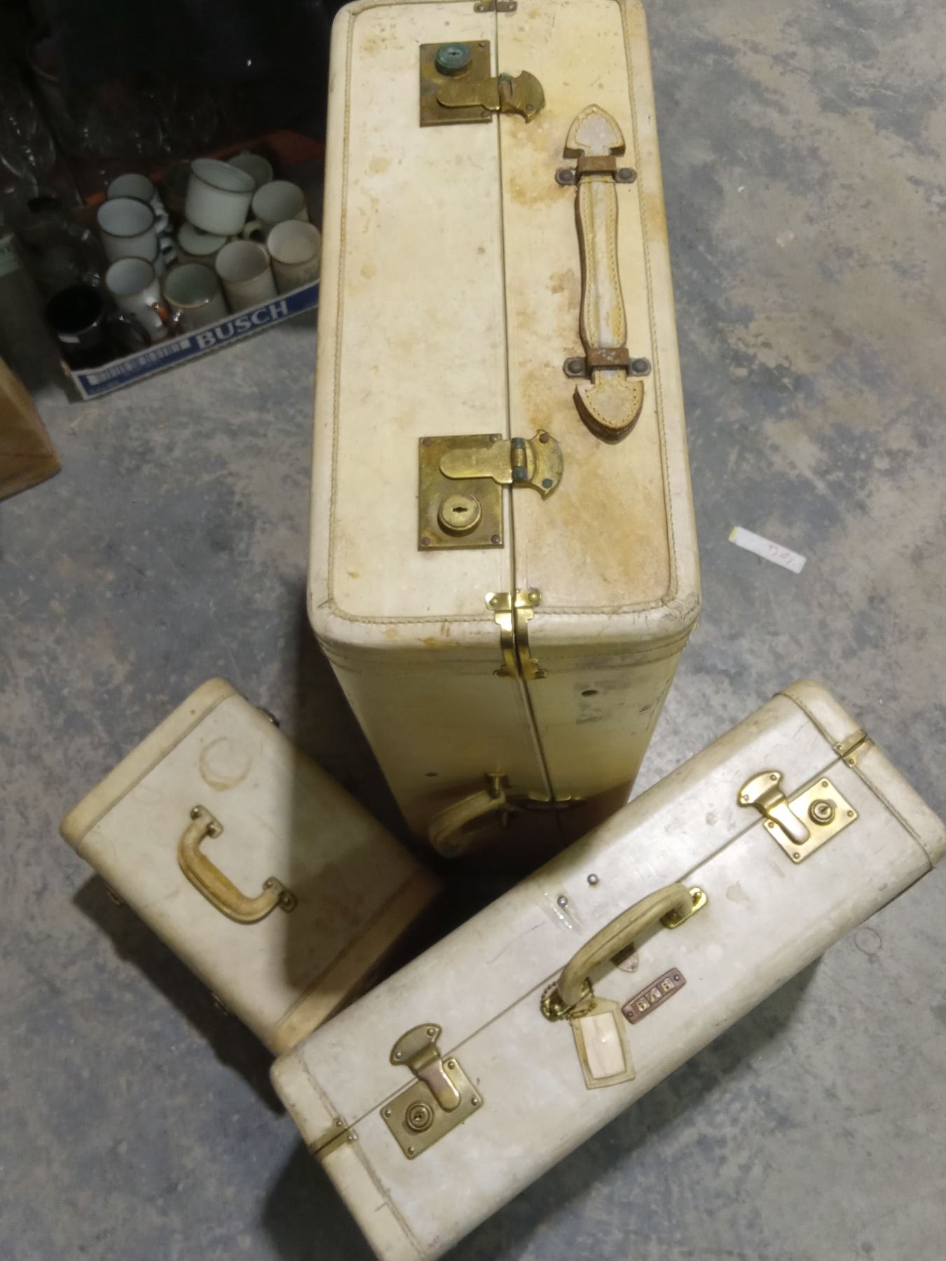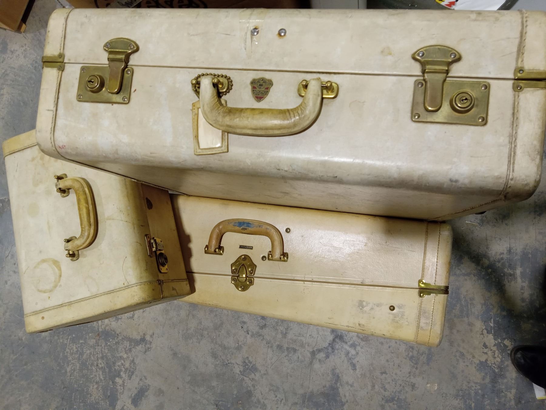 3-PCS LUGGAGE 1-SALESMAN/MAGICIAN; 1-LG. & TRAINCASE; -ALL BEIGE-