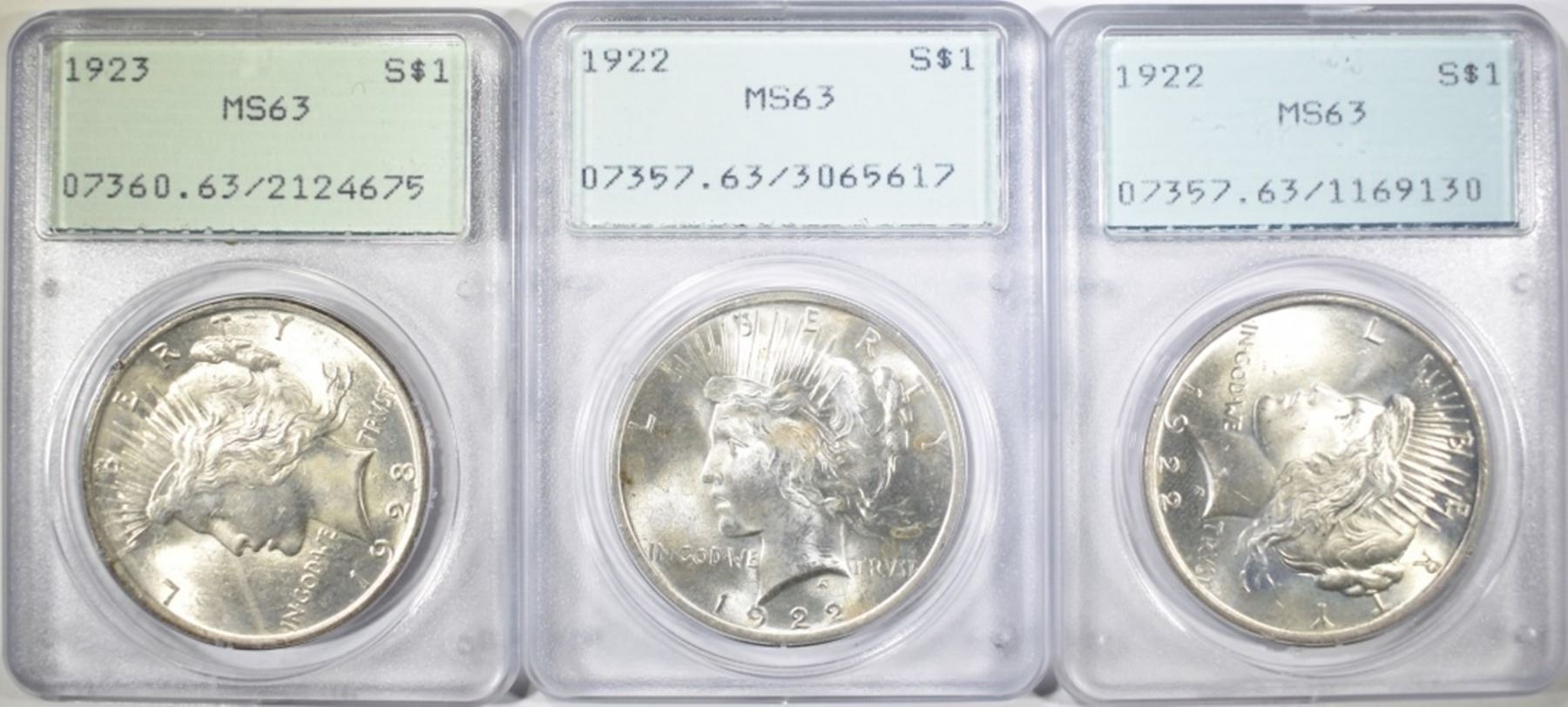(2) 1922 MS-63 & 1923 MS-63. ESTIMATE $160 - $180.