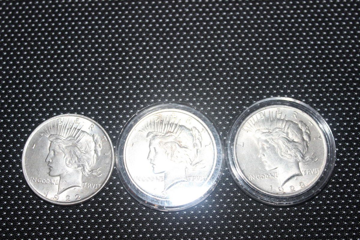 3 PEACE DOLLARS - 1922 - 1923 - 1924