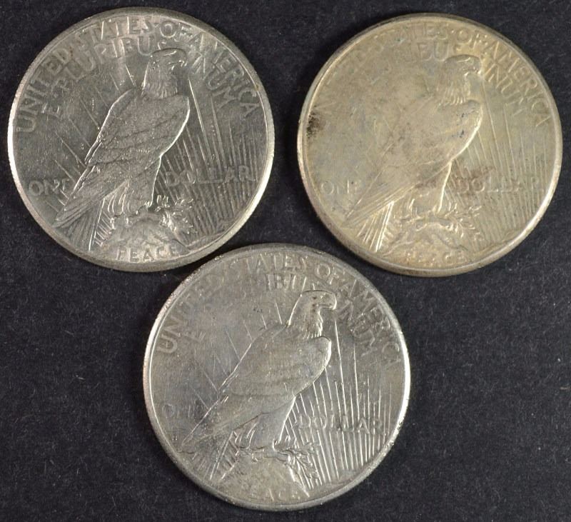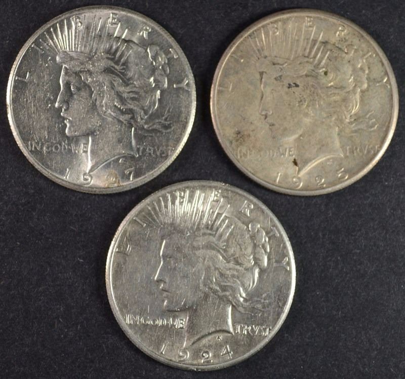 3 PEACE DOLLARS 24-S, 25-S, 27