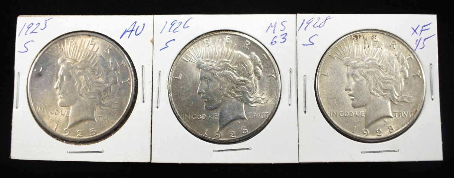 1925-S AU, 1926-S CH BU, &1928-S XF/AU ESTIMATE $300 - $350.