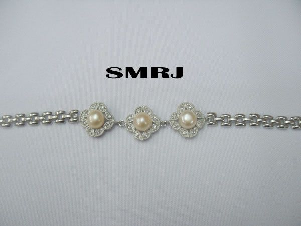 3 PEACH PEARLS ELEGANT SILVER BRACELET *** METAL: SILVE **|**|** 3 PEACH PEARLS ELEGANT SILVER BRACELET *** METAL: SILVER; APPROXIMATELY 10 GRAMS ; MSRP: $500