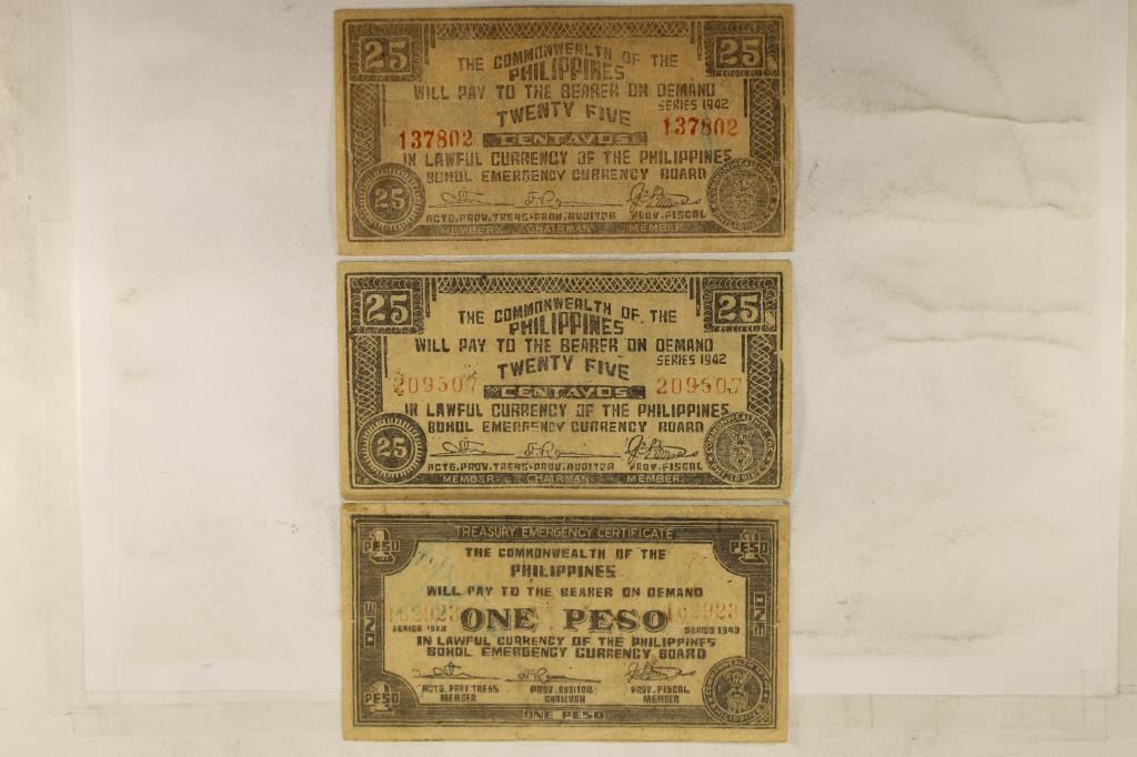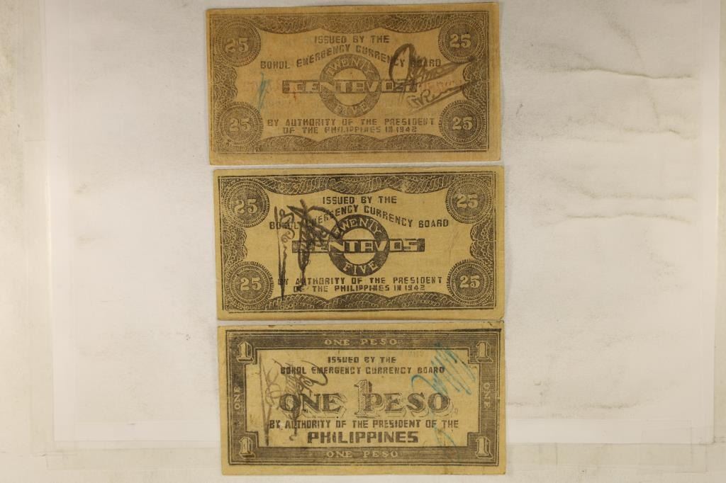 CENTAVOS & 1-1943-1 PESO BILLS, STAMPS ON REV OF ALL