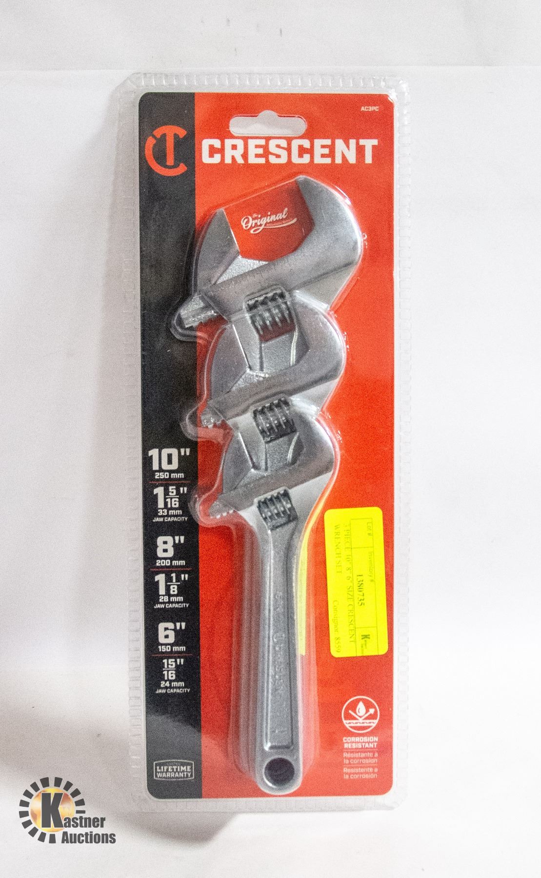 3 PIECE 10" 8" 6" SIZE CRESCENT WRENCH SET