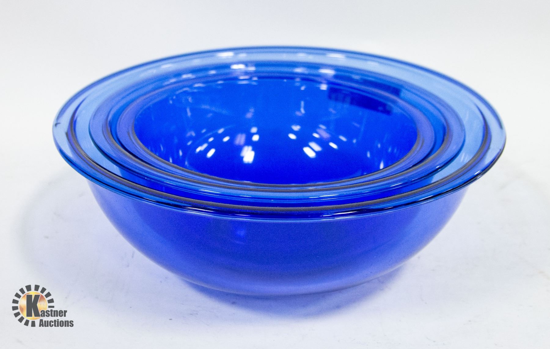 3-PIECE BLUE PYREX BOWL SET - 1.5L, 2.5 QT &