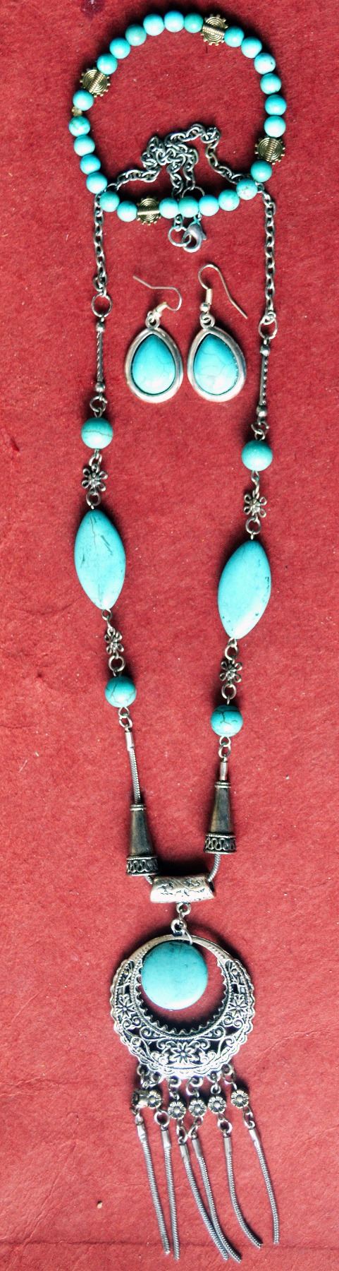 3 PIECE JEWELRY SET. SET INCLUDES NECKLACE, 1 PAIR OF PIERCE ERRINGS, AND A BRACLET