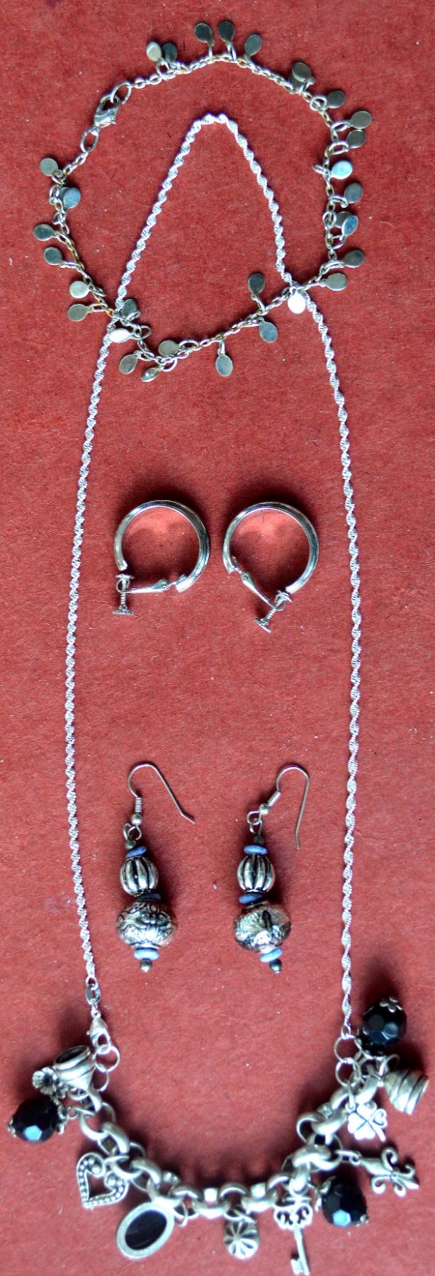 3 PIECE JEWELRY SET. SET INCLUDES A "STERLING SILVER 925" NECKLACE, 1 PAIR OF PIERCE ERRINGS, AND A BRACLET