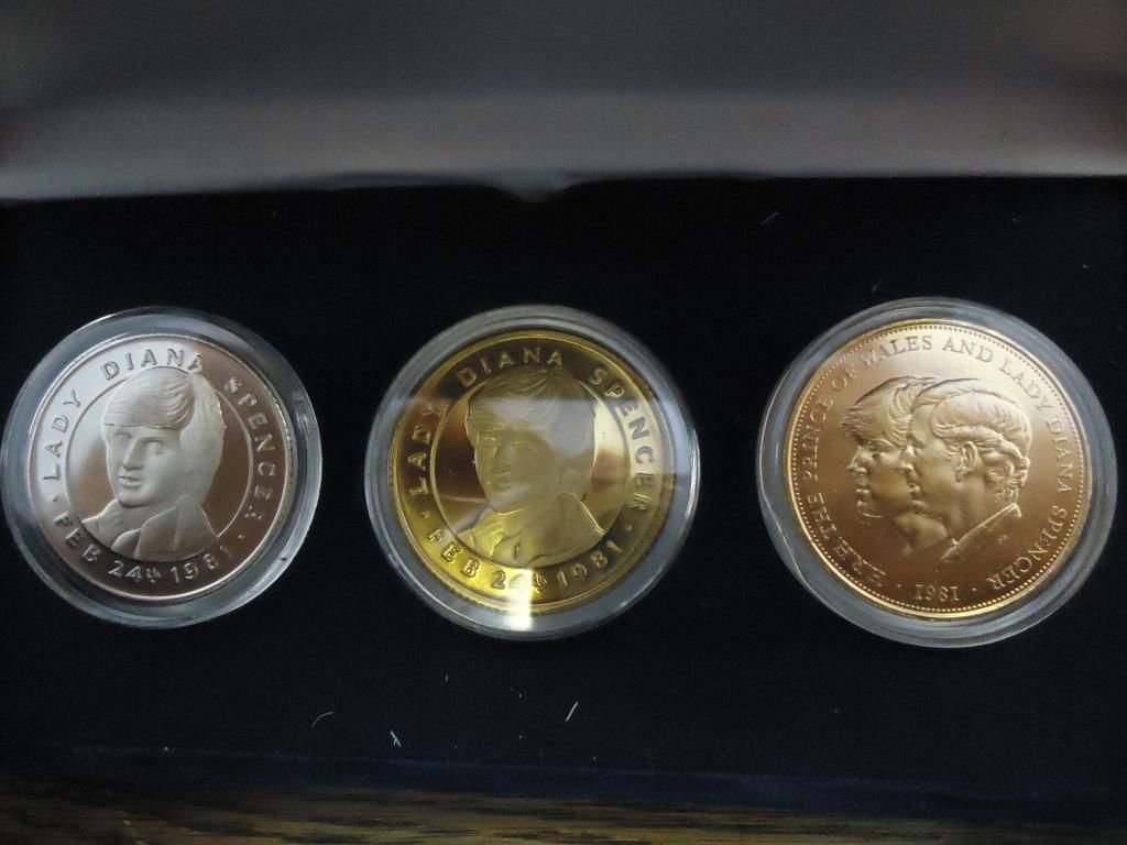 1 SILVER & 1 GOLD COLORED TOKEN AND A 1981 GREAT BRITAIN CROWN (GOLD PLATED)