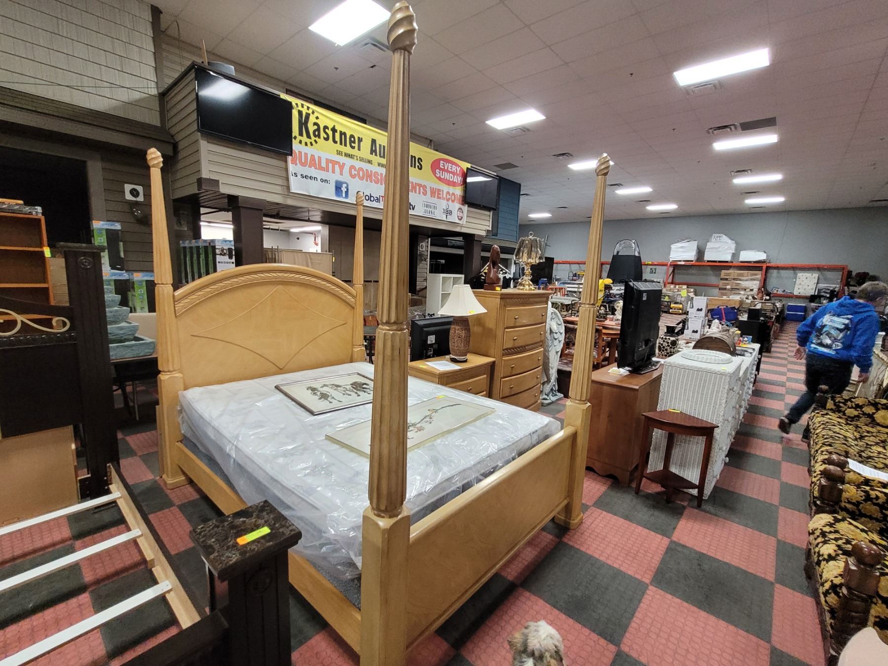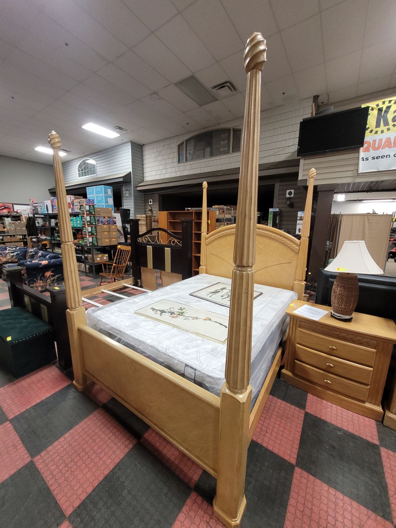QUEEN SIZE POSTER BED FRAME WITH MATTRESS. SIDE TABLE MEASURES32X29.5X16, TALL BOY MEASURES 43X55 (TALL) X 17.25" **ALL ITEMS MUST BE REMOVED BY 5PM SATURDAY, MAY 6TH 2023. ALL REMAINING ITEMS WILL BE SUBJECT TO A $6.00 PER DAY STORAGE CHARGE. ANY ITEMS REMAINING AFTER MONDAY, MAY 22ND, 2023 WILL BE CONSIDERED FORFEITED. NO REFUNDS WILL BE ISSUED FOR FORFEITED ITEMS. TO SCHEDULE A PICK UP APPOINTMENT CLICK HERE