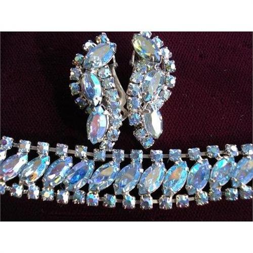 SPECTACULAR 3 PIECE RHINE STONE SET, IT COMES IN ORIGINAL BOX, THE SET CONSISTS OF BEAUTIFUL AND INTRICATE, QUALITY, NECKLACE AND MATCHING EARRINGS, SIGNED "CONTINENTAL", NECKLACE MEASURES ABOUT 15 1/4" LONG AND OVER 1/2" WIDE AND EACH EARRING MEASURES ABOUT 1 1/4" LONG, AND THEY ARE CLIP-ON TYPE,Excellent mint condition, US Buyer to pay 8.00 for shipping plus insurance.THANKS.
