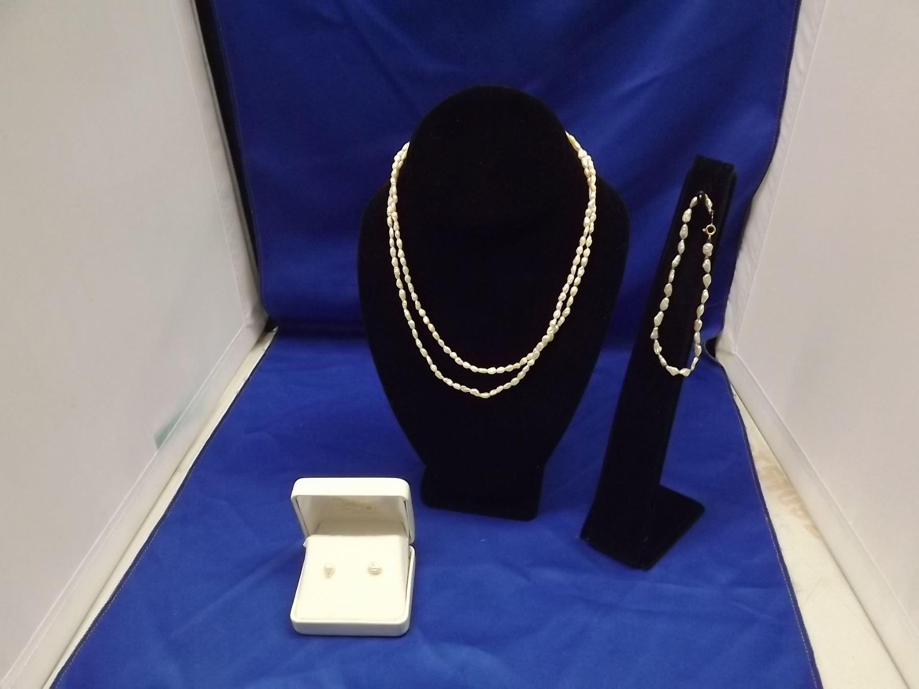3 PIECE SET - FRESH WATER PEARL NECKLACE & BRACELET & EARRINGS