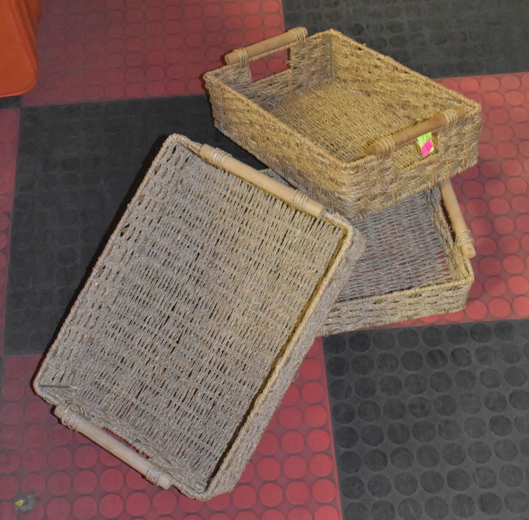 3 PIECE WICKER BASKET SET WITH HANDLES