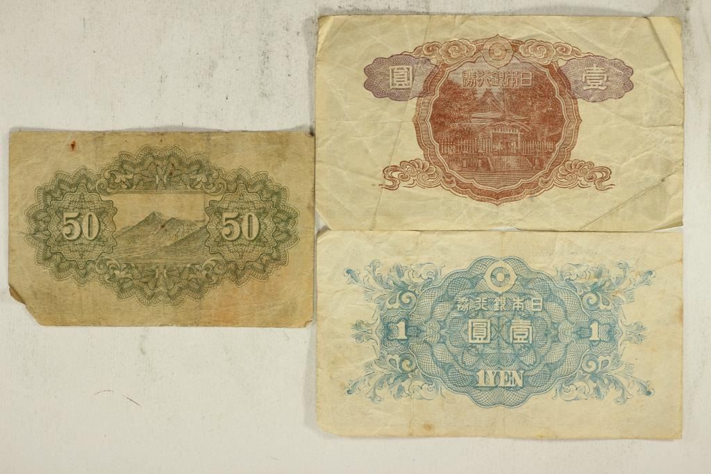 (WWII ERA), A 1-YEN (WWII ERA) AND A POST (WWII) 1-YEN BILL