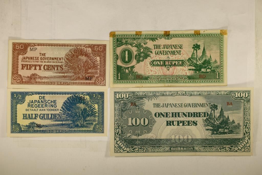 CURRENCY, 50 CENTS, HALF GULDEN, 1 RUPEE & 100 RUPEES