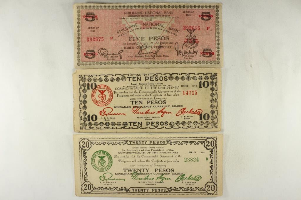 1943-5 PESOS, 1944-10 PESOS AND 1944-20 PESOS