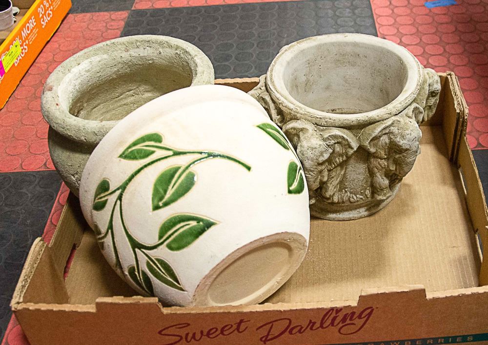 3 PLANT POTS 2 STONE + 1 CERAMIC