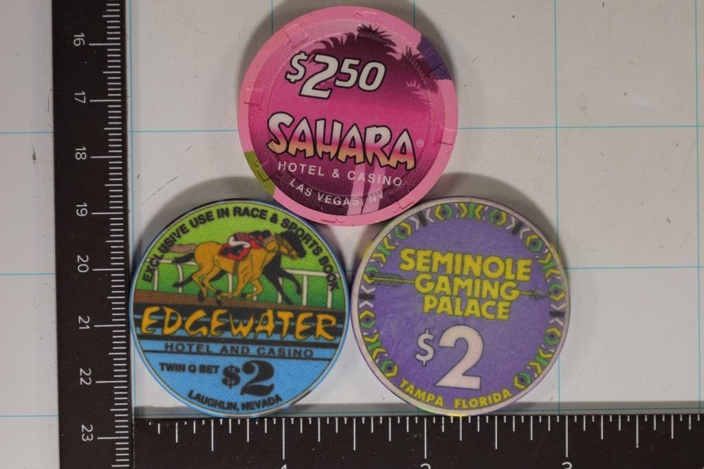 LAUGHLIN NEVADA, $2 SEMINOLE GAMING TAMPA FLORIDA AND $2.50 SAHARA HOTEL LAS VEGAS, NEVADA