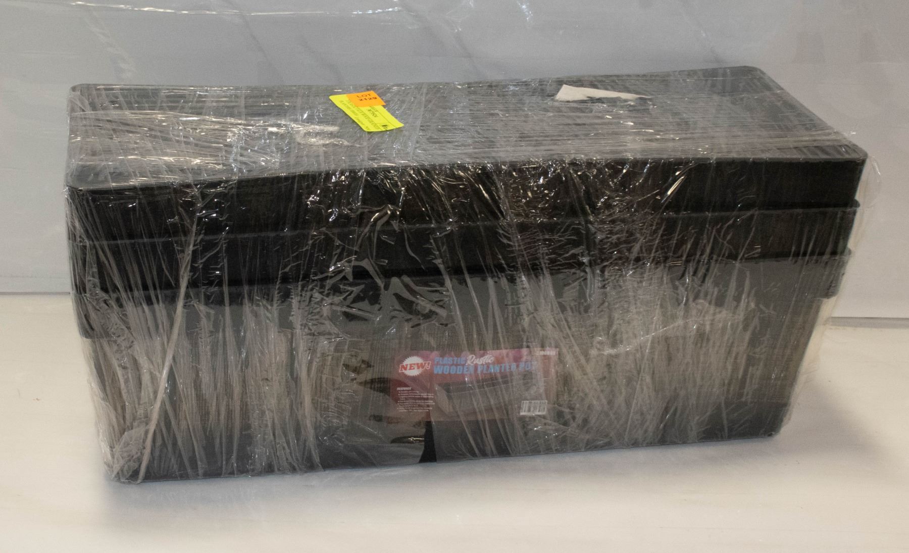3 PLASTIC FAUX WOOD GRAINED PLANTERS 18X6X6