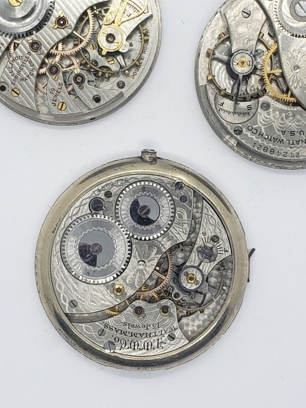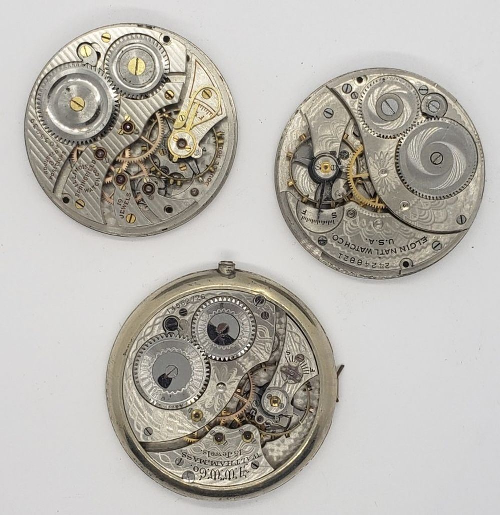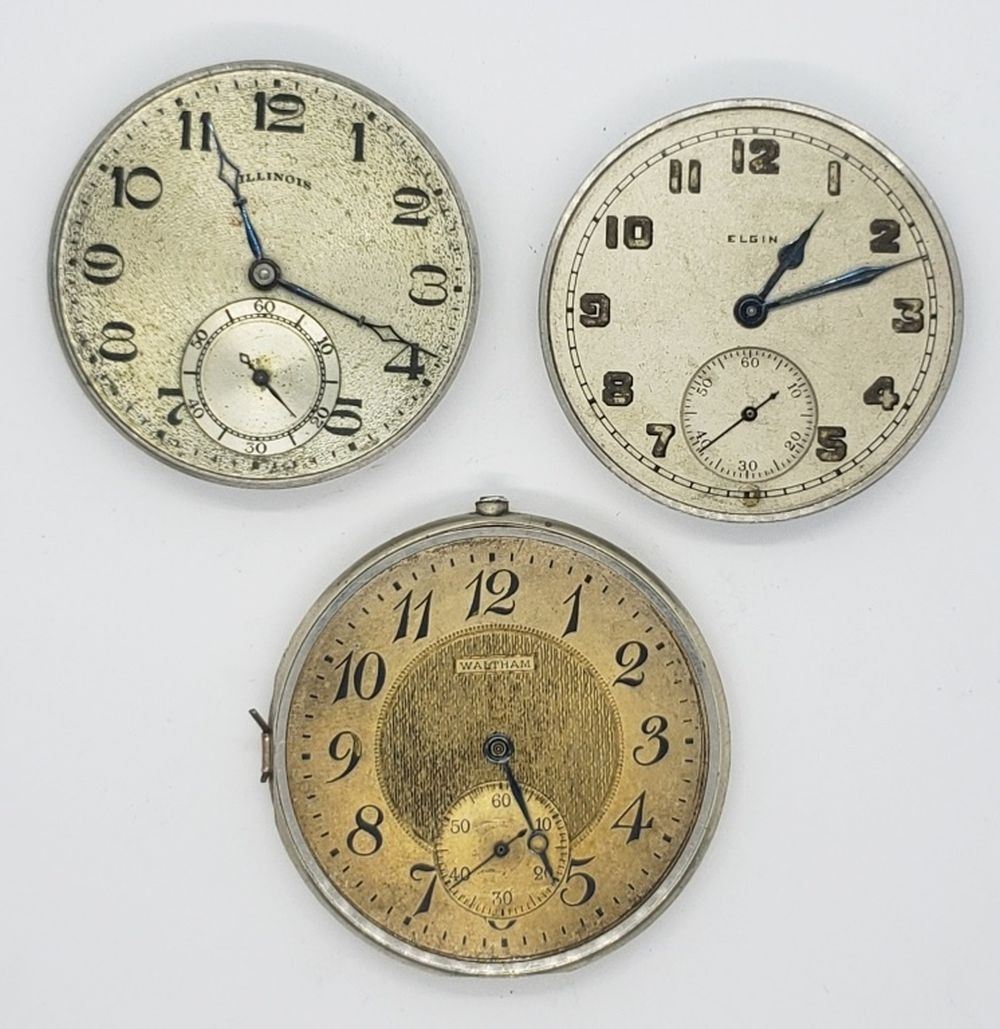 WALTHAM 14 SIZE 15j SER #14562726; ELGIN 12 SIZE 7J SER #24248821; ILLINOIS GRADE 406 12 SIZE 19j SER # 4036939