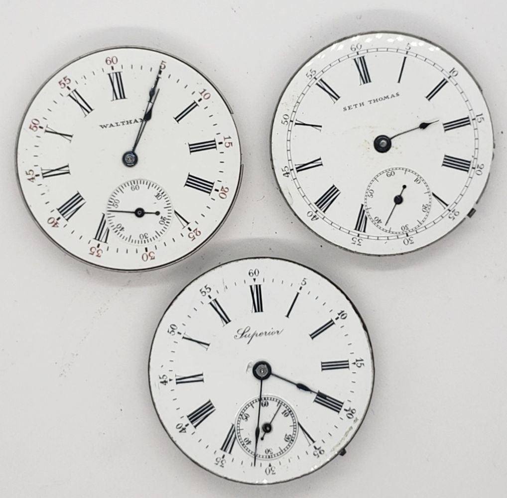 WALTHAM 6 SIZE 15j SER #15353573; SETH THOMAS SER #450692; SUPERIOR SWISS MOVEMENT