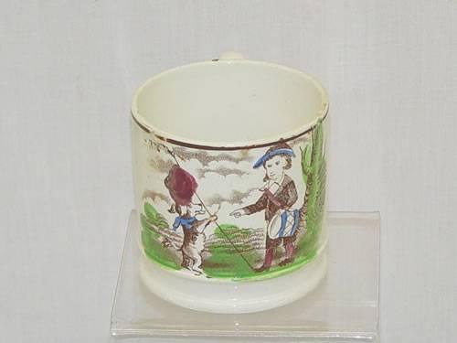 3" POLYCHROME STAFFORDSHIRE CHILDS MUG - BOY W/ DRUM;