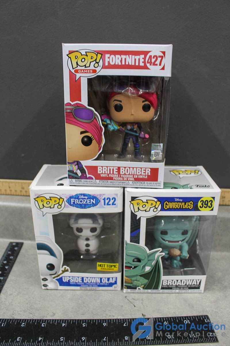 (3) POP! In Box Vinyl Figures- Brodway, Olaf and Brite Bomber