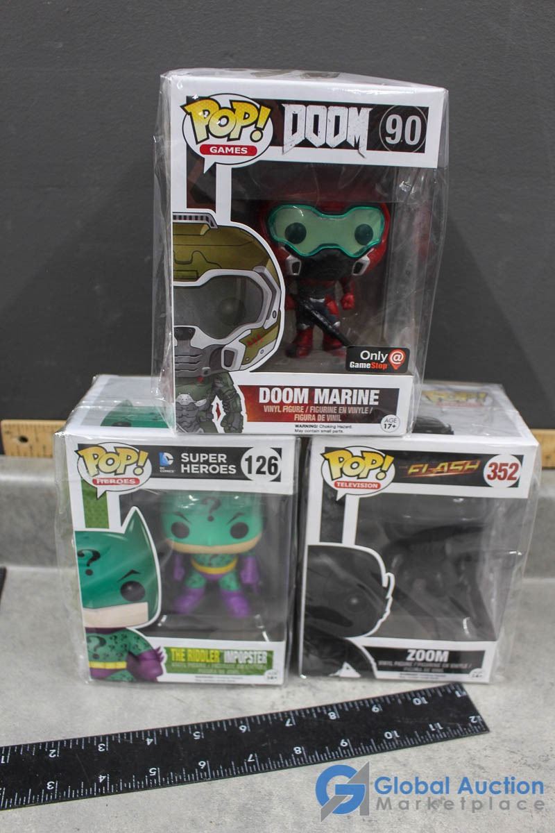 (3) POP! In Box Vinyl Figures - Doom, Zoom, the Riddler