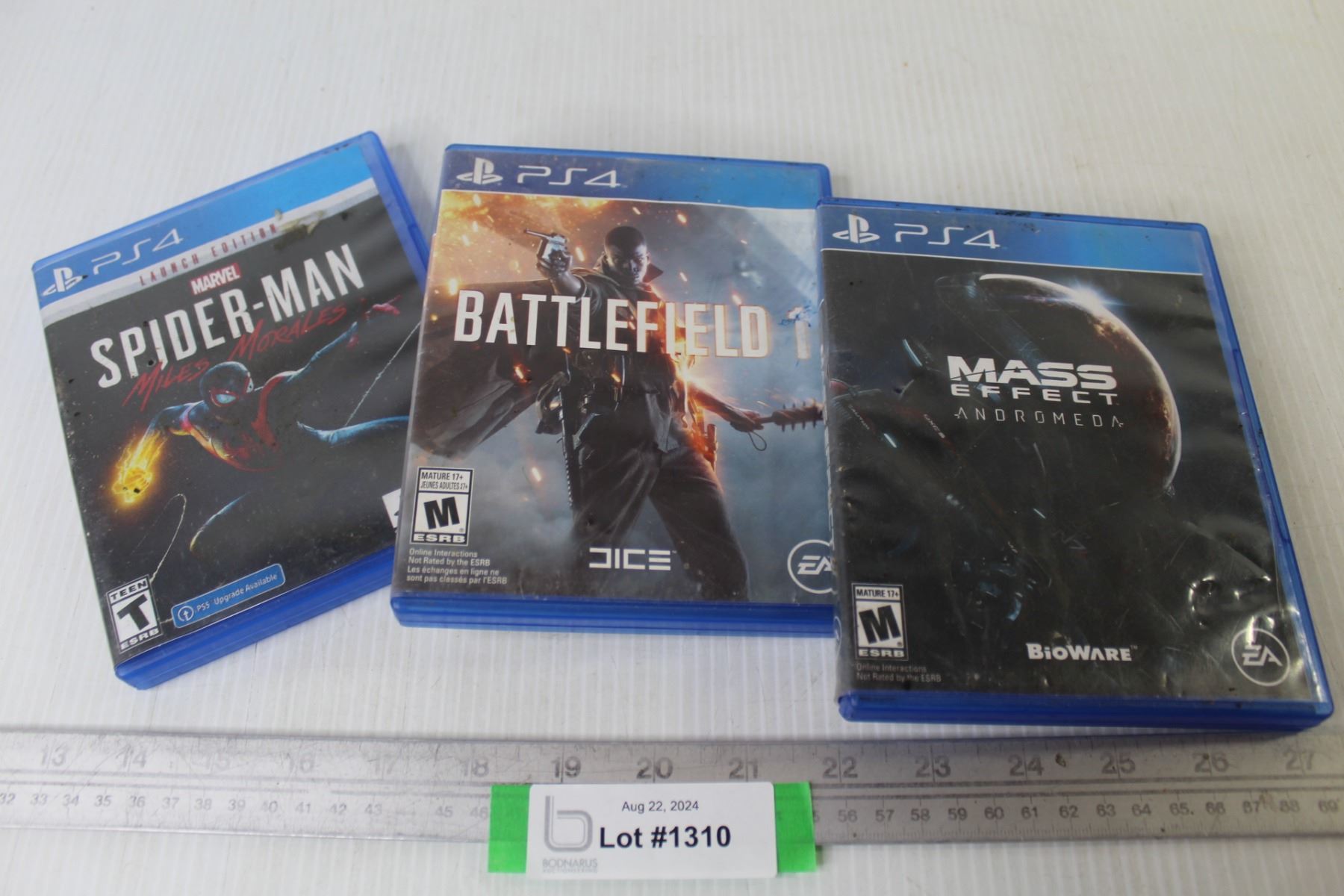 (3) PS4 Video Games - Mass Effect - Battlefield - Spiderman