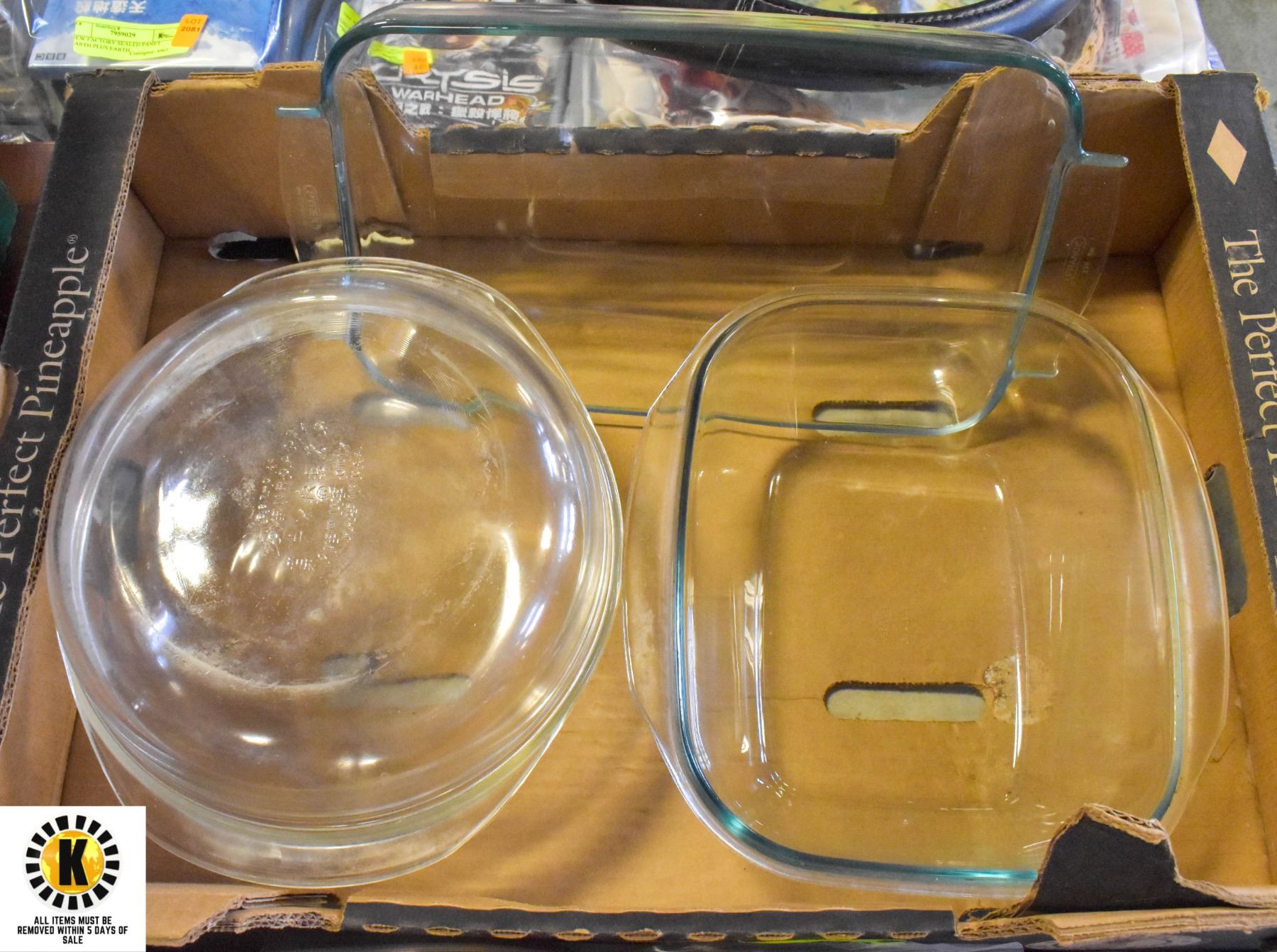 3 PYREX DISHES, 1 OVEN ROASTER, 2