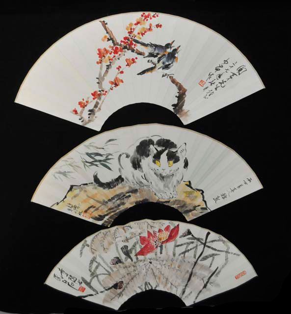 Paintings depicting cat, birds and floral. Approx. 22" L X 8" W. Please read our terms of sale.